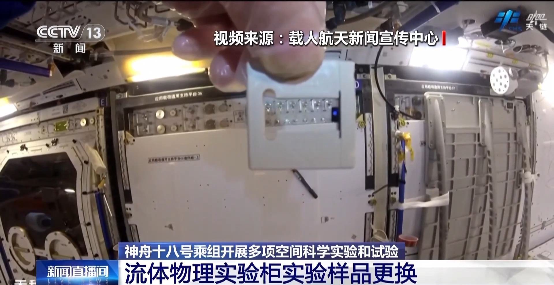 此外,乘组还对流体物理实验柜的实验样品进行了更换。该实验柜可开展不同流体体系的动力学过程、扩散过程,相变及自组织行为的在轨微重力实验。