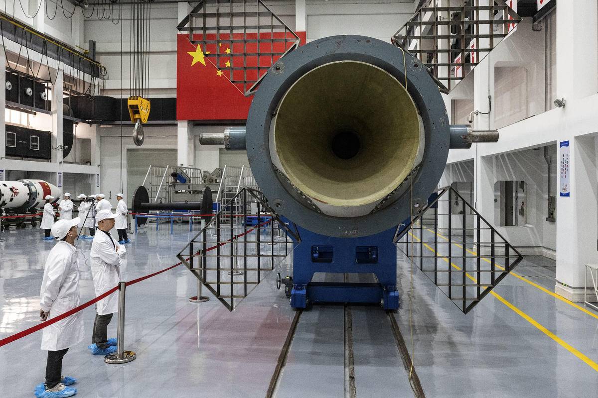 中央媒体一行走进快舟火箭总装厂房。 (湖北日报全媒记者 任勇 摄)