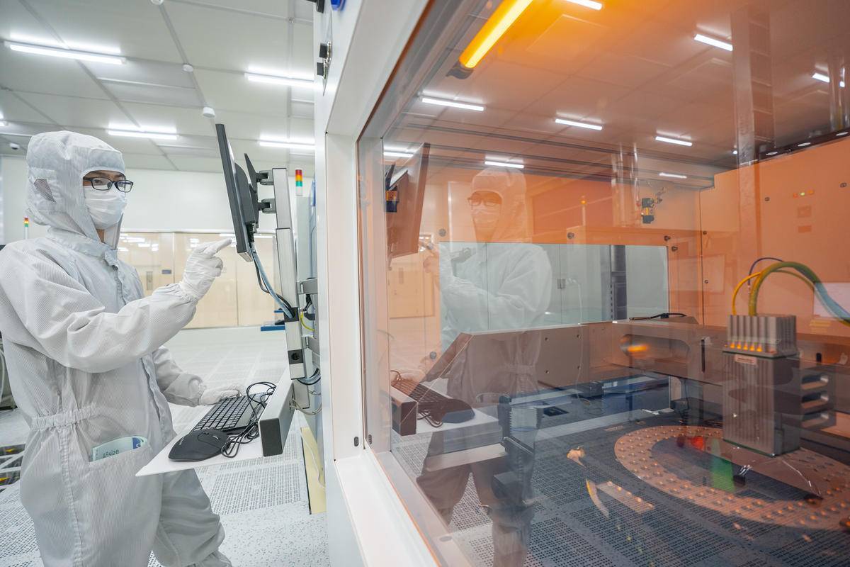 位于光谷的国家信息光电子创新中心无尘实验室内,工程师对芯片进行性能初测及筛选。 (湖北日报全媒记者 魏铼 摄)