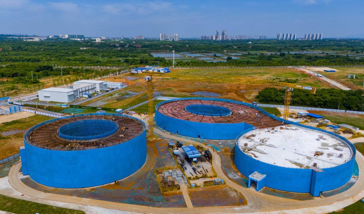 航拍深部岩土工程扰动模拟设施国家重大科技基础设施项目建设现场。(湖北日报全媒记者 魏铼 摄)
