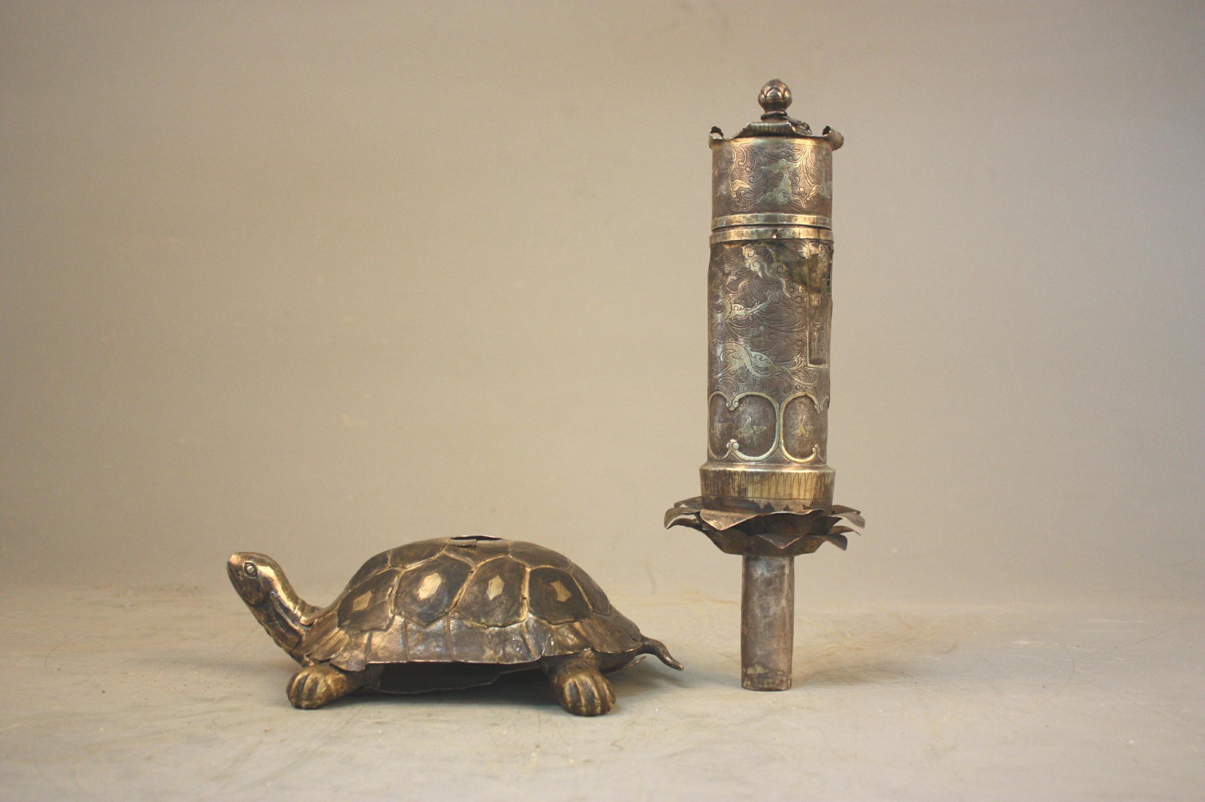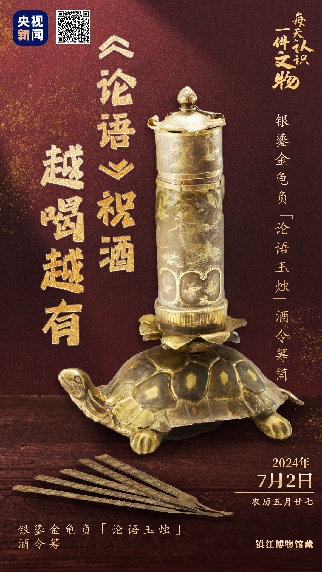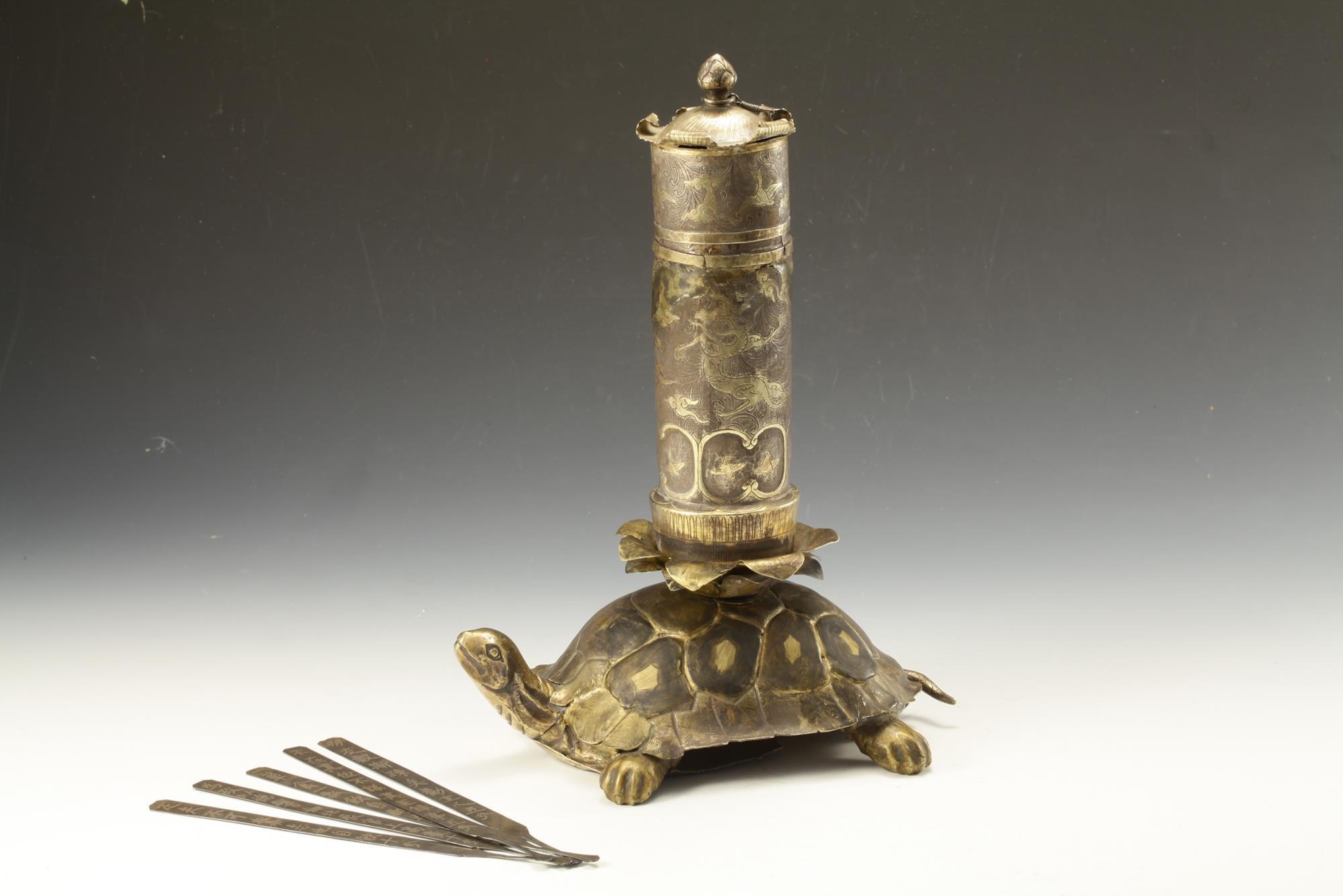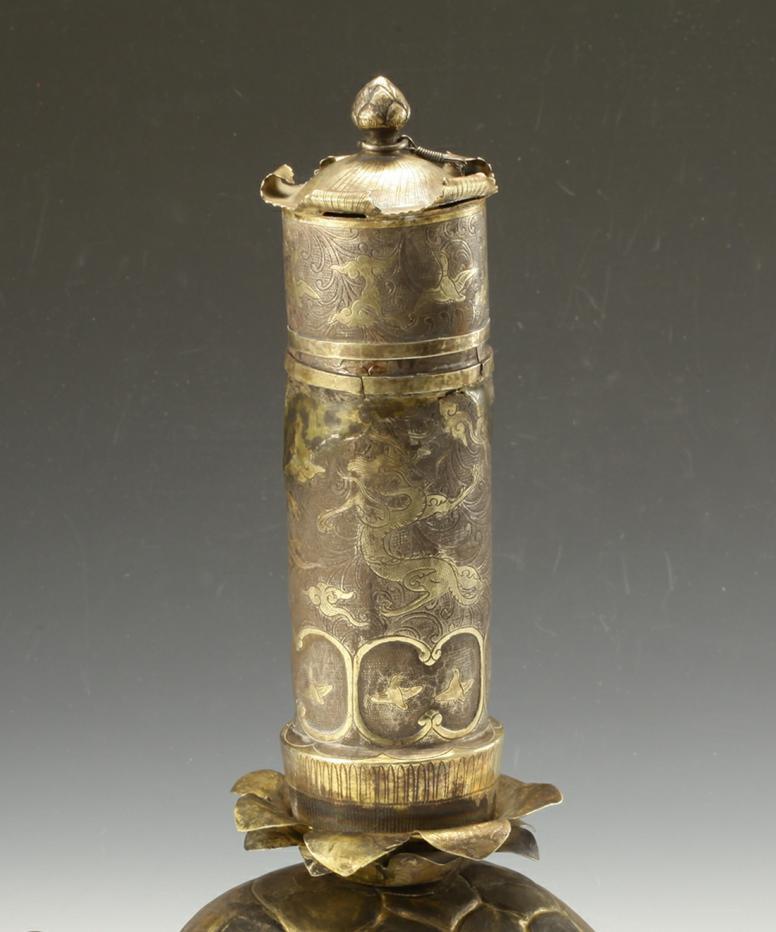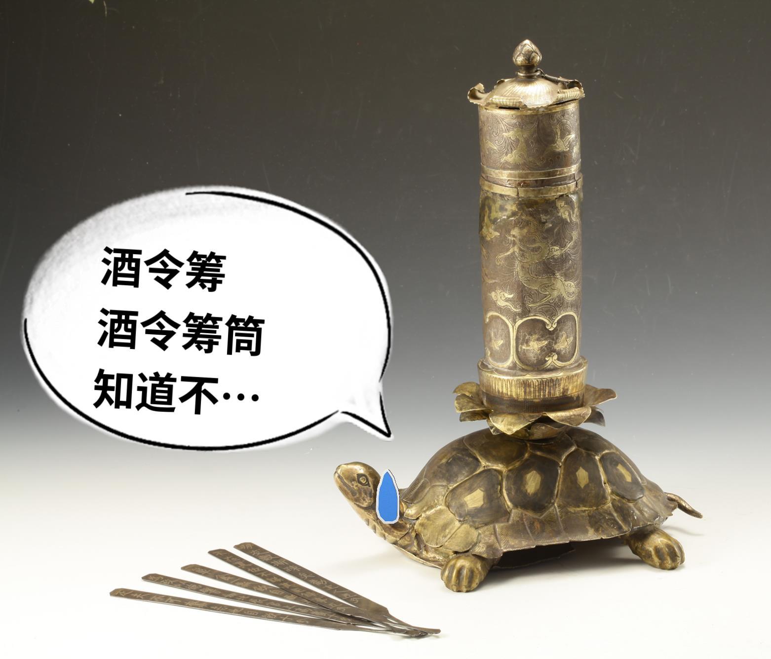 银鎏金龟负“论语玉烛”酒令筹筒