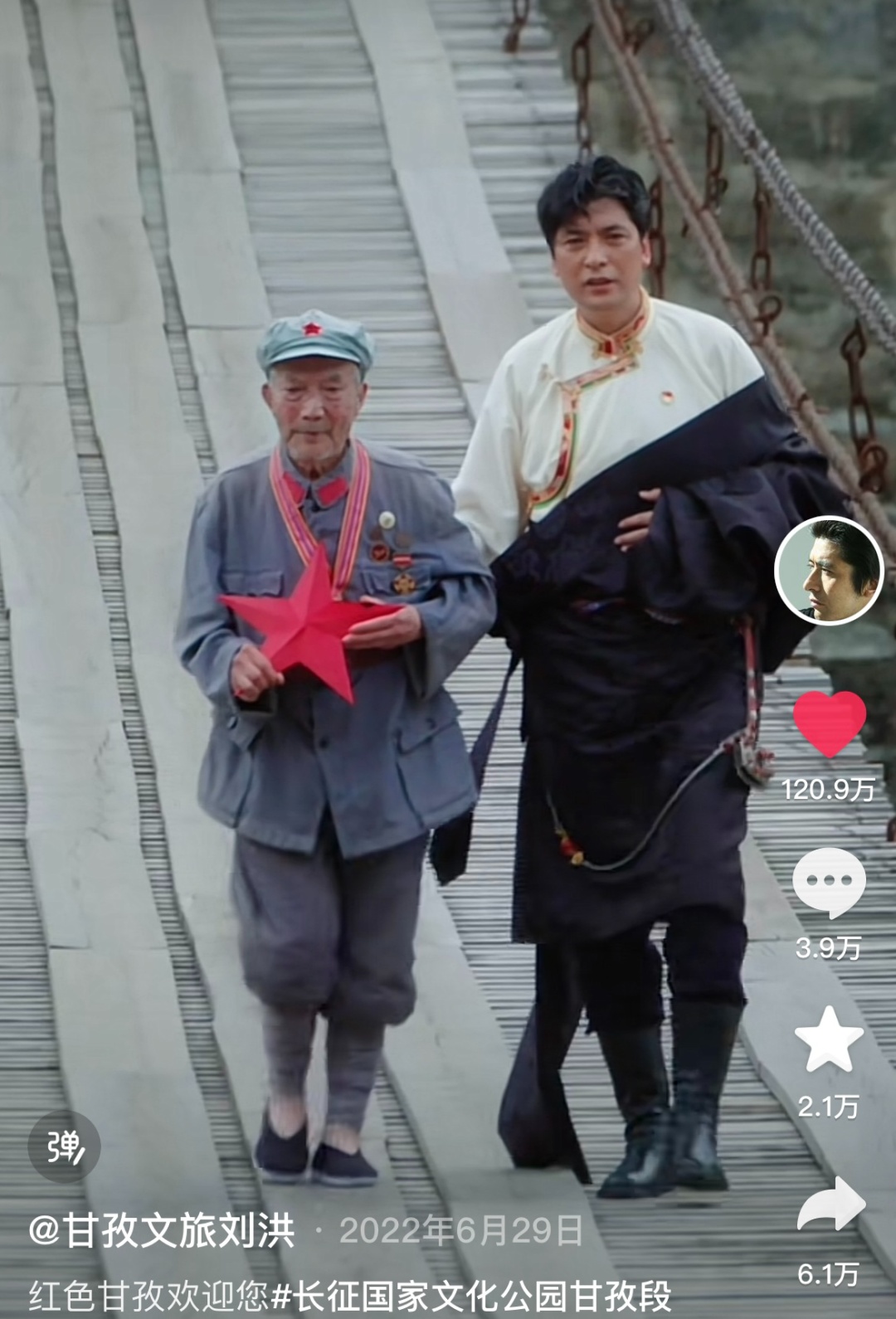 加上川江,“刘洪文旅公益宣传工作室”共有五人,他们有一些共识,不是为了博眼球、赚流量、做爆款而去拍短视频,“文旅宣传是面子,民族交融团结、人民安康幸福是里子”,他们想用“老百姓喜闻乐见的方式”来宣传甘孜今非昔比的新颜。无论搀扶96岁的老兵重返英雄泸定桥,还是被点赞两百万次的茶马古道“变装”,正是这样的用意。