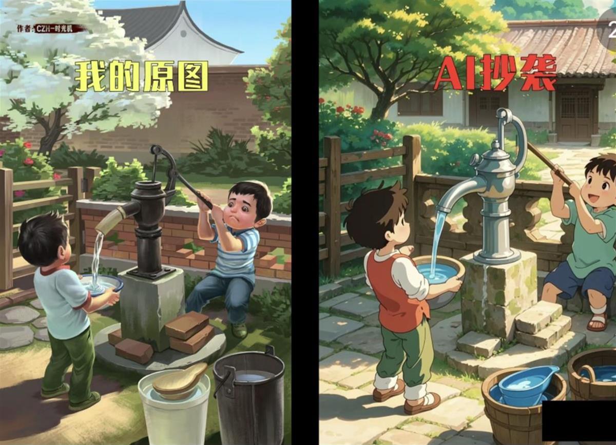AI被应用到绘画、音乐等多领域,为创作生产带来了便利。但与之相伴的,是日渐增多的“AI侵权”纠纷。近日,手绘博主陈先生(CZH-时光机)发现,有多人发布的AI作品与自己的原创手绘作品的构图、内容几乎一模一样,侵犯了其权益。