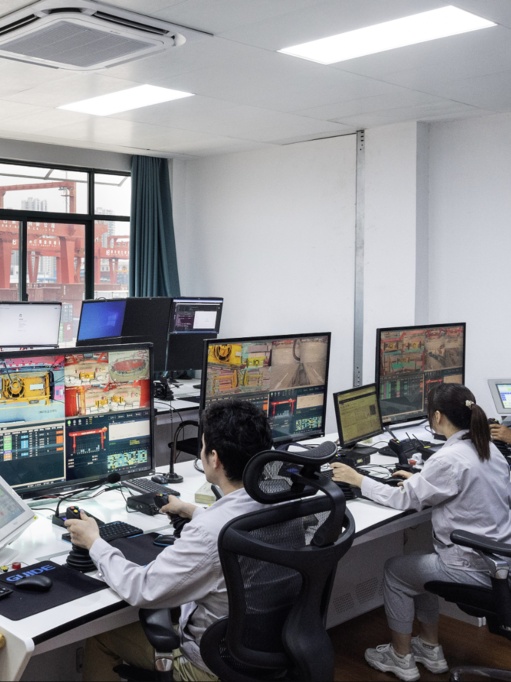 “以前是室外高空作业,风吹日晒雨淋。每天爬上10多米进操作室,整天低着头俯瞰集装箱,一天下来腰酸背痛。现在坐在办公室,一人可以同时操作三台设备,轻松作业,高效安全。”潘婷说。