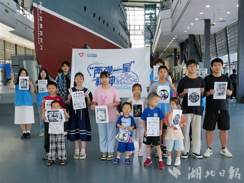 宣讲在观众们热烈的掌声中结束,紧接着一场有趣的拓印活动让小朋友们热情高涨。武汉交通职业学院师生将“两弹一星”精神有关的图案和文字制成了橡皮章,邀请小朋友们进行拓印体验。
