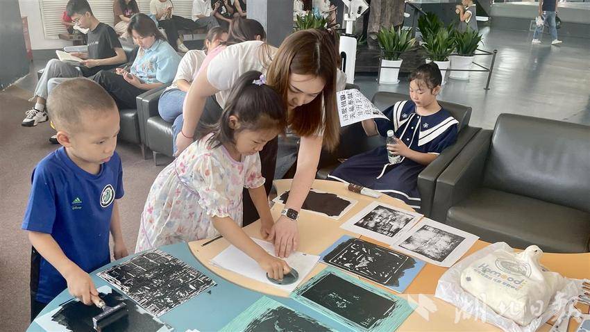 在老师的细心指导下,小朋友们自己动手,一张张印有“钱学森”“东方红Ⅰ号”“蘑菇云”等图案的版画呈现出来。通过拓印,小朋友们了解了“两弹一星”元勋们的故事。