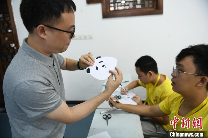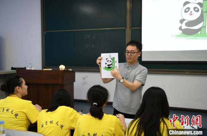 7月2日,华裔青少年在重庆学习趣味汉语,认识中国大熊猫,了解大熊猫的性格、生活习性、大熊猫保护区和保护措施等。当天,2024“中国寻根之旅”夏令营(重庆营)在重庆师范大学开营,来自印度尼西亚、俄罗斯、英国、美国、委内瑞拉的60名华裔青少年,将在为期10天的时间里,学习中国古诗词、书法、剪纸、武术等文化课程。还将走进白鹤梁水下博物馆、重庆中国三峡博物馆等地,“听”传统故事、“读”经典古诗、“学”中华文化、“阅”巴山渝水、“品”重庆风味、“看”重庆发展。图为老师给华裔青少年讲解如何制作大熊猫样式的扇子。中新社记者 周毅 摄