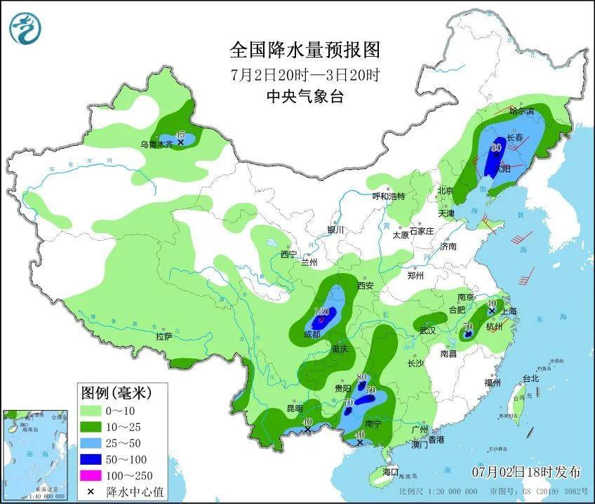 中央气象台2日18时发布暴雨蓝色预警:预计2日20时至3日20时,内蒙古东南部、吉林、辽宁、陕西西南部、四川盆地西部、贵州东南部、广西中西部和南部、云南西北部和东南部、安徽南部、浙江北部、江西东北部以及新疆沿天山地区等地的部分地区有大到暴雨,其中,四川盆地西北部局地有大暴雨。