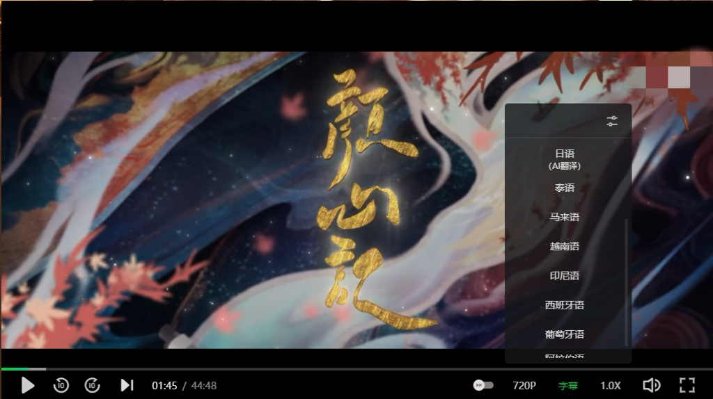 多达10种语言的翻译字幕
