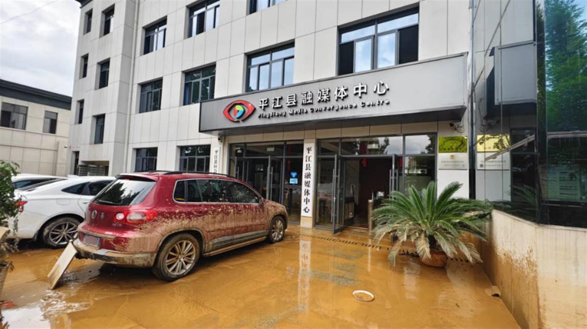 平江县融媒体中心的情况如何?7月3日,极目新闻记者来到了位于平江县城体育路的平江县融媒体中心,该中心门前已没有积水,但还有淤泥。在一楼大厅,几位工作人员正在用水管和拖把清洗地面。一名工作人员告诉极目新闻记者,突来的洪水导致融媒体中心一楼被淹,“一楼演播厅的木地板和电子屏都被泡了。”该工作人员还介绍,一楼的用电房也进了水,“现在一楼断电了,(我们)都在二楼工作。”