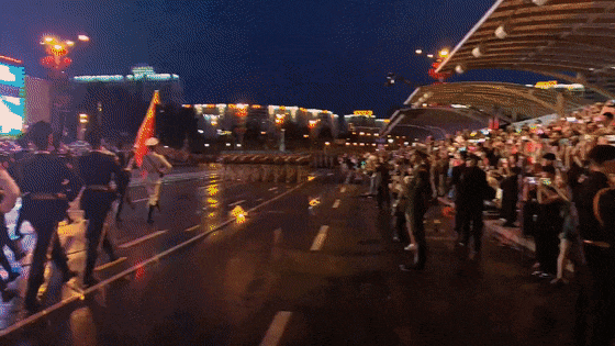 凌晨时分,结束阅兵彩排后