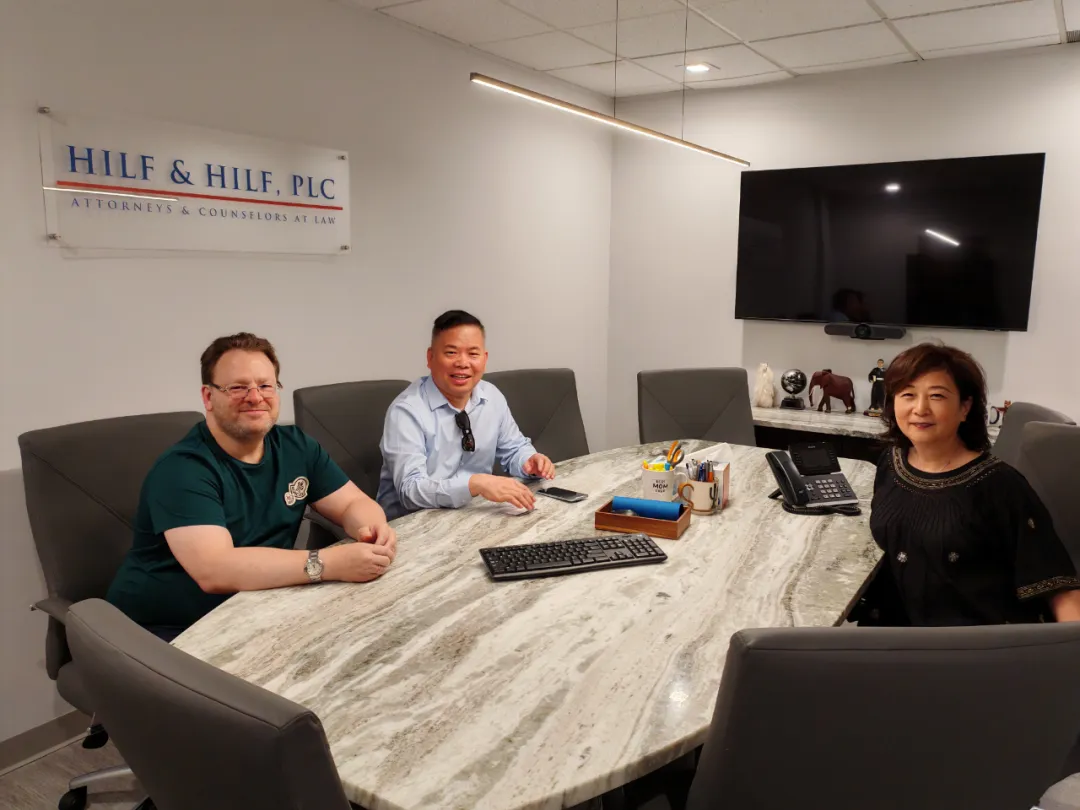 在希尔夫和希尔夫律师事务所,律所合伙人DANIEL HILF和SUFEN HILF热情接待并介绍了事务所相关情况。该所成立于2005年,现有7名人员,主要办理刑事和移民事务,在美国移民法的涉及领域有着丰富的经验。