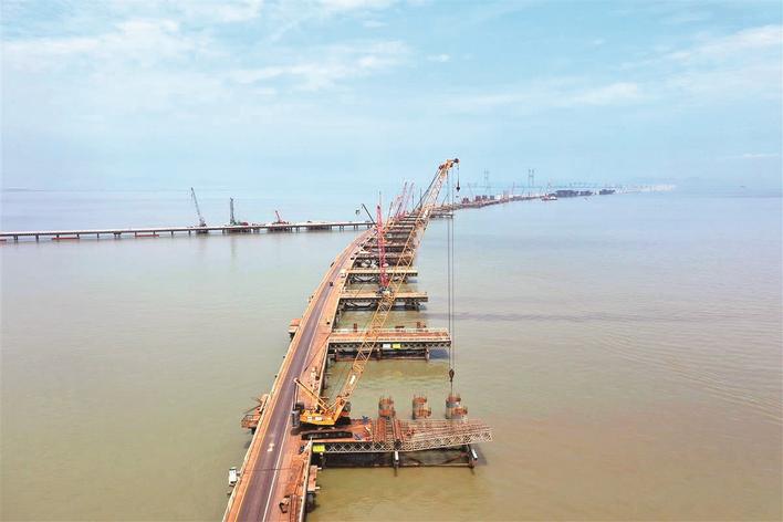 “每年夏季是大湾区热带气旋和台风的活跃期,考虑到上部结构施工安全,必须确保大桥在台风来袭前完成主桥合龙。”中铁大桥勘测设计院高级专家杨光武说。