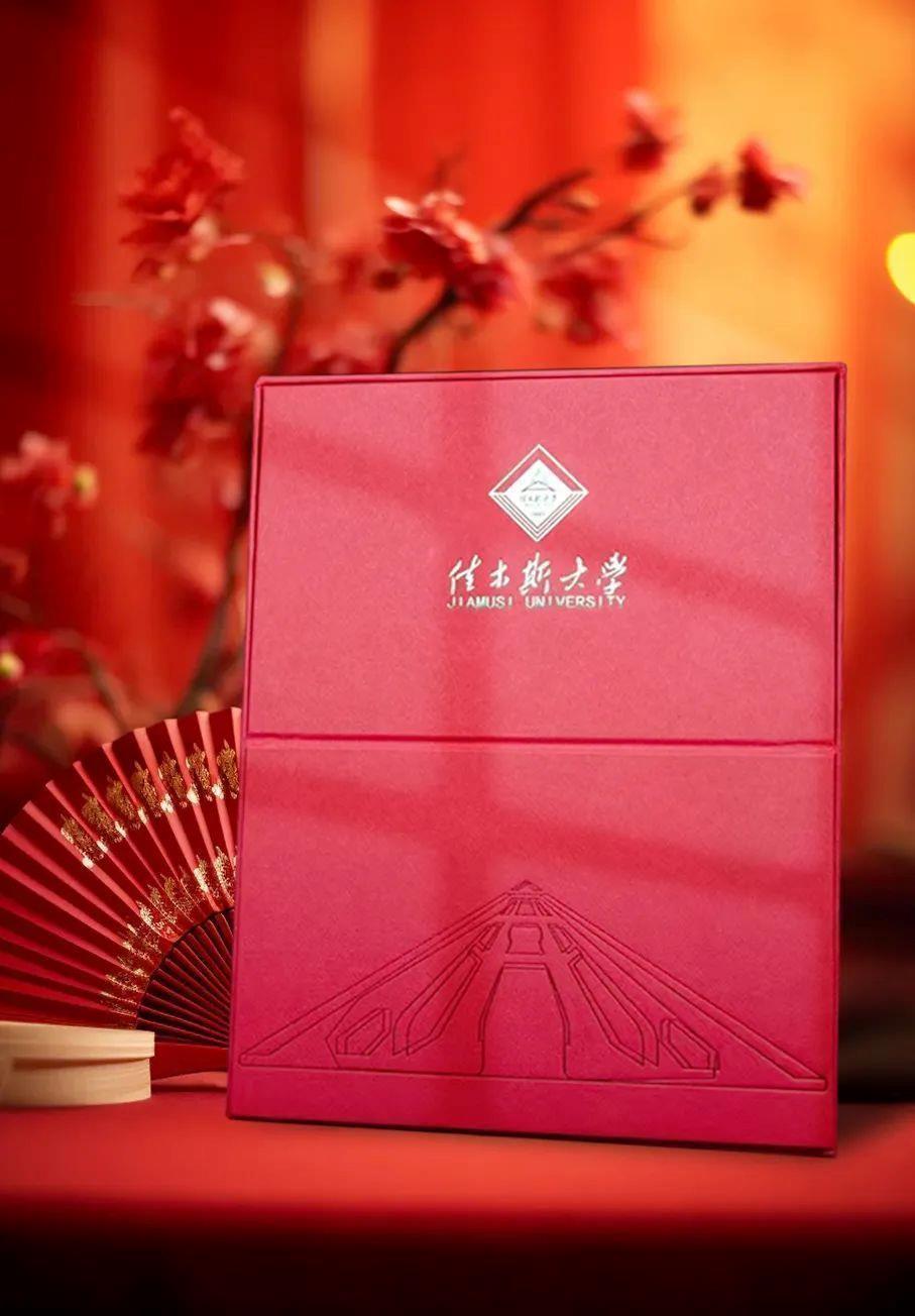 佳木斯大学的录取通知书,外形方面采用红砖样式盒子,而伴手礼胸针里有“珍珠”,寓意学生是学校的掌上明珠,师者皆是“开蚌人”。