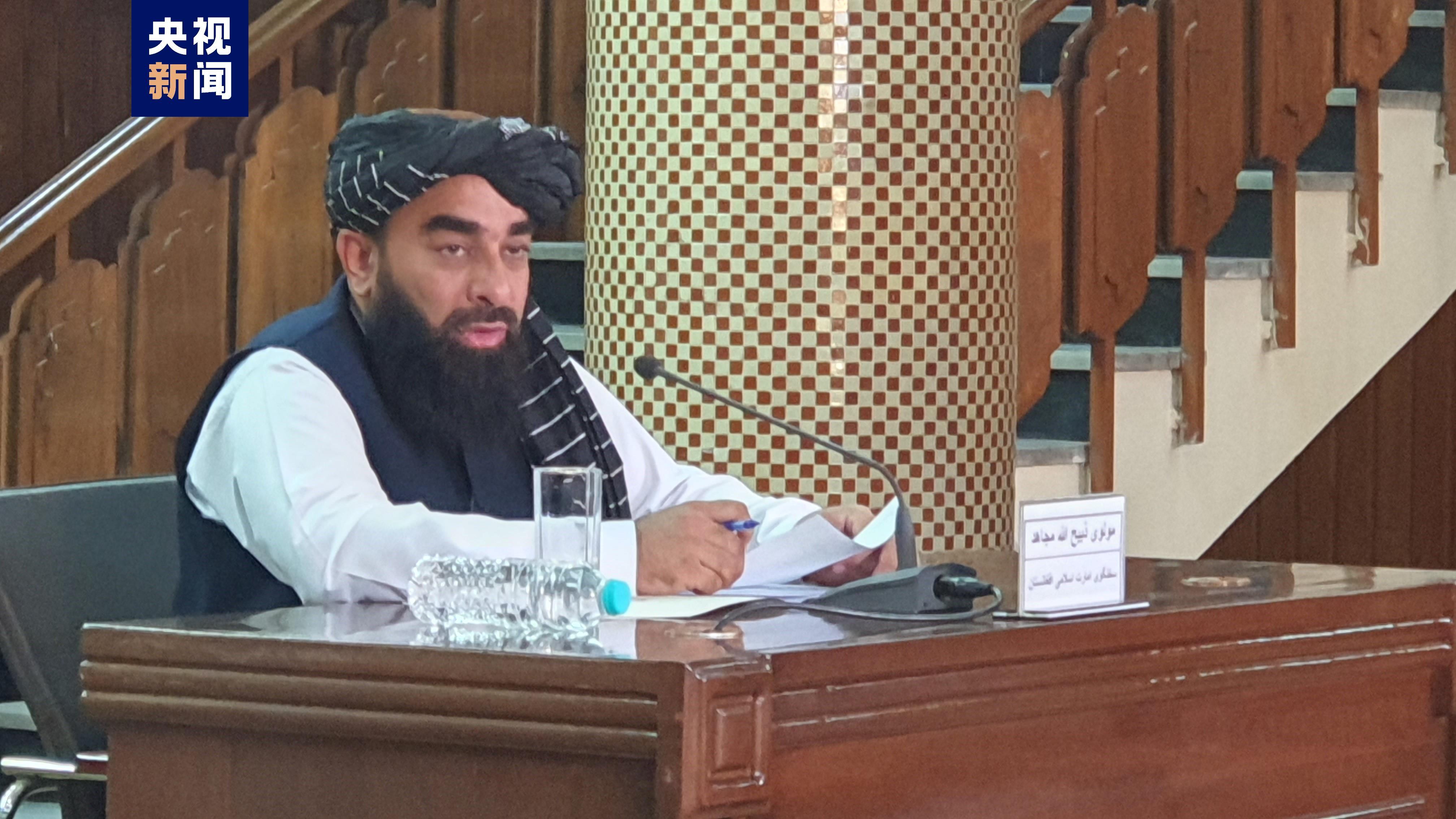 △3日,阿富汗临时政府新闻发言人穆贾希德在喀布尔举行记者会介绍多哈会议成果
