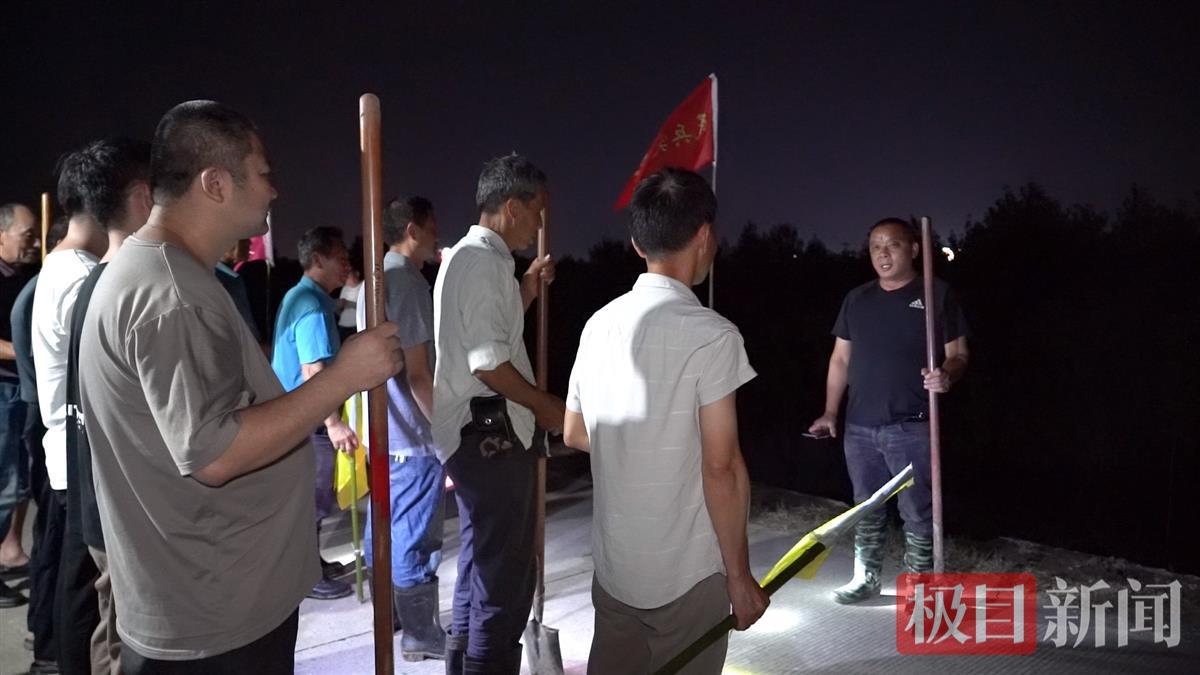随着他的一声令下,参与巡堤的人员有的带上手电筒,有的拿起一米多长的竹竿或铁锹,开始了当夜的第二趟巡堤。