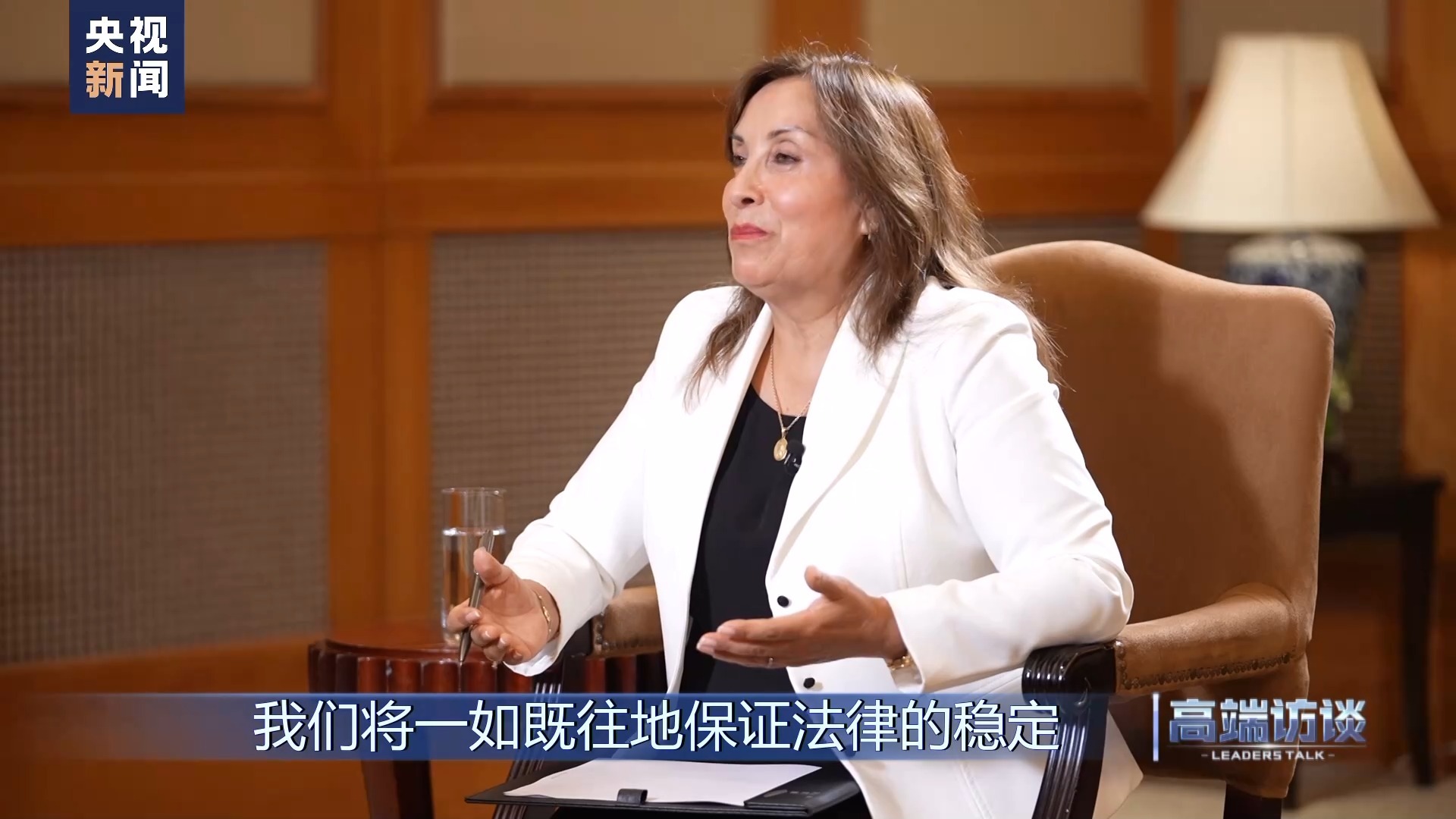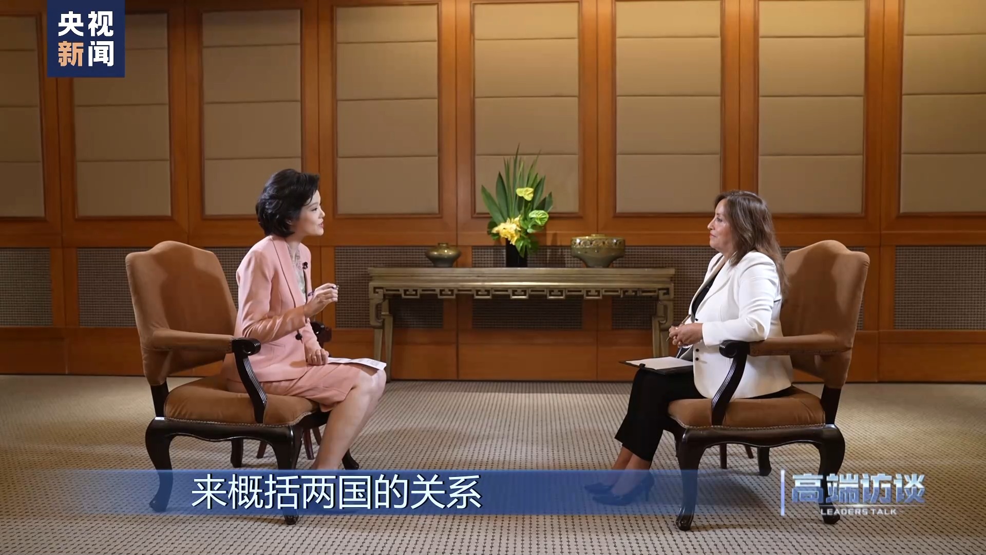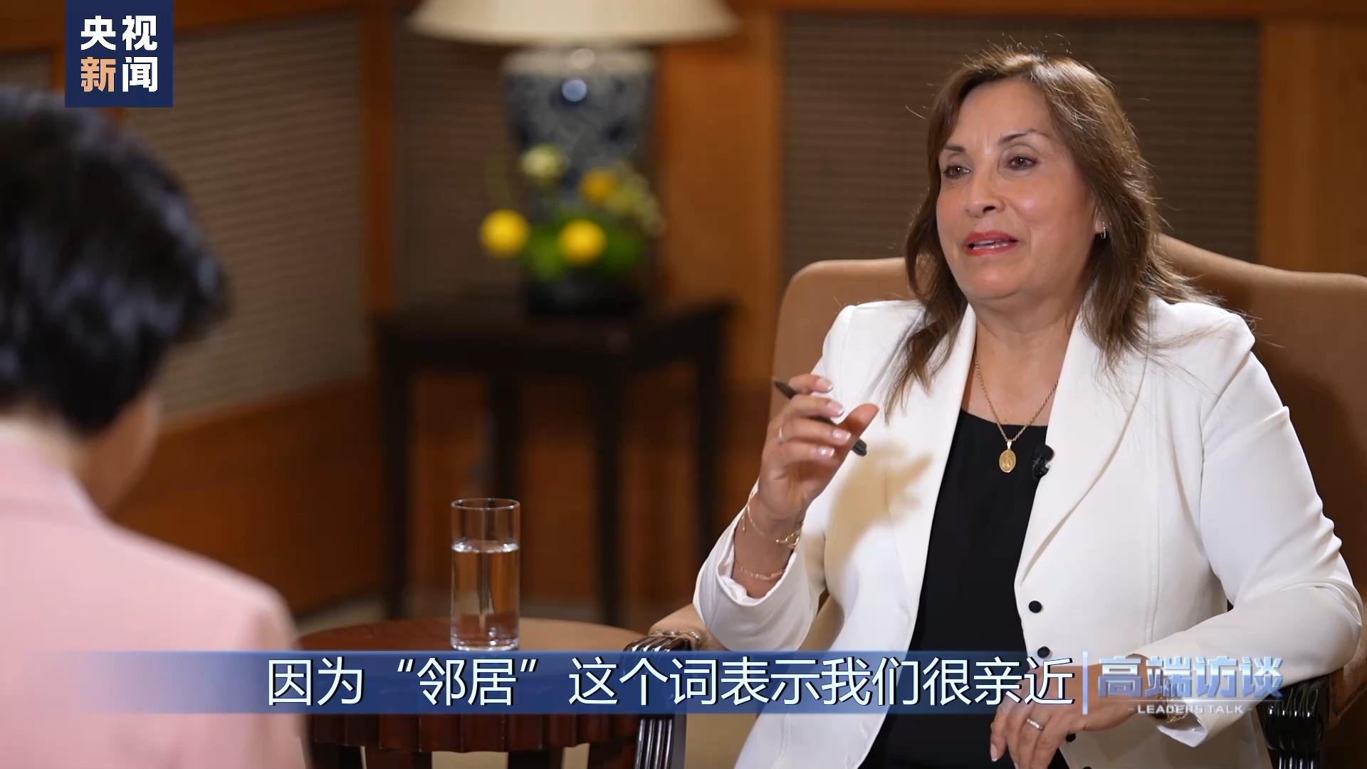 在专访当中,博鲁阿尔特总统多次表示,两国虽然相隔万里,但仍然可以跨越太平洋,像邻居一样紧密拥抱。她说此次访华让她看到了中国的现代化和高水平发展,她希望将秘鲁也建设为一个现代化的国家。我们也期待两国继续深化政治互信、加强务实合作,推动中秘全面战略伙伴关系不断迈上新台阶。