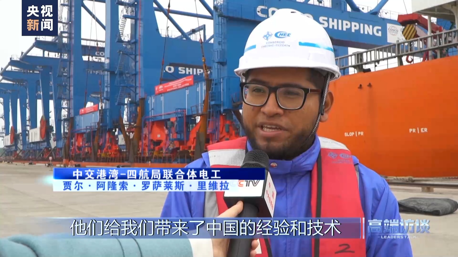 中交港湾-四航局联合体电工 贾尔·阿隆索·罗萨莱斯·里维拉:我是负责整个项目电力部分的一员,我和中方人员合作很多,他们给我们带来了中国的经验和技术。多亏了钱凯港,很多秘鲁人将从这个项目中受益。