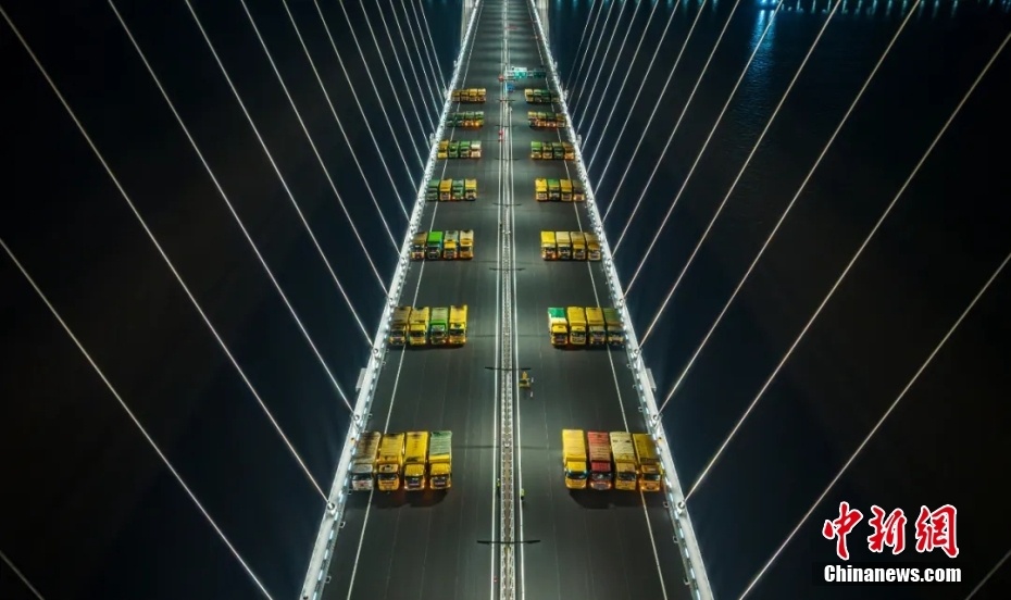 2024年4月13日,粤港澳大湾区超级工程深中通道进入桥梁荷载试验阶段。 中新社发 广东省交通集团有限公司 摄