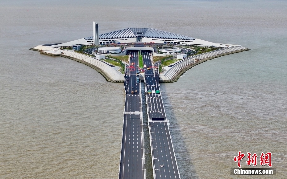 2024年6月20日,航拍深中通道西人工岛。 中新社记者 陈文 摄