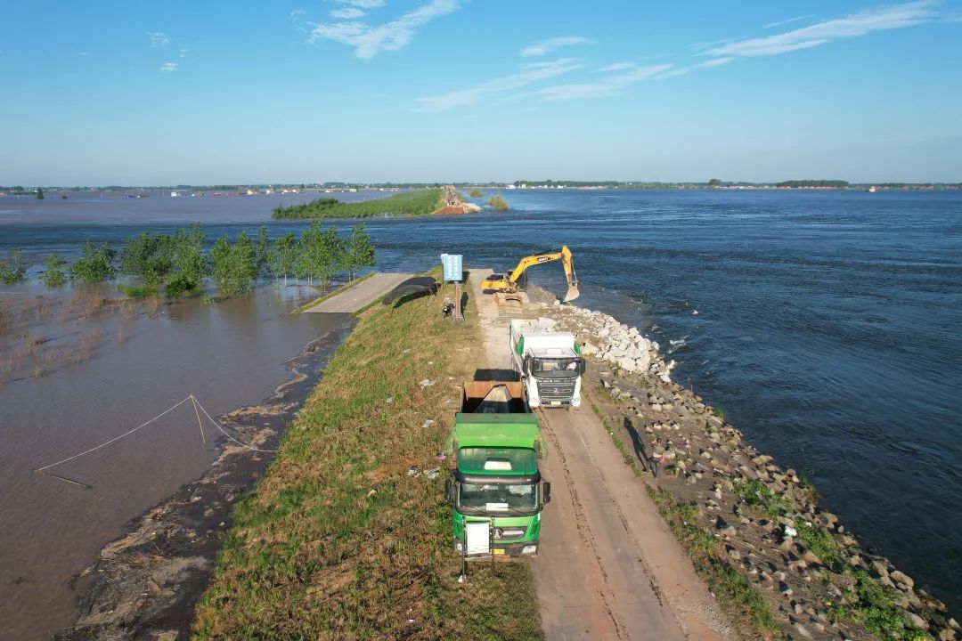 目前,救援人员正在严防死守钱团间堤,已铺设彩条布10公里,并完成清基扫障、电线架设等工作。现在还在进一步充实人员力量,分6个堤段分工值守,24小时不间断巡逻查险,重点做好隔水间堤薄弱堤段、单薄堤身、砂基堤段、穿堤建筑物等薄弱环节盯防和加固,及时发现并处置险情,全力以赴确保第二道防线安全。