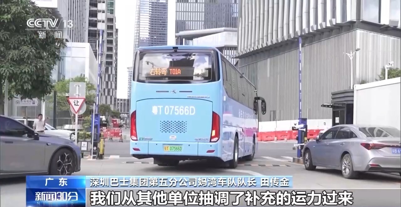 深圳巴士集团第五分公司妈湾车队队长 田传金:我们从其他单位抽调了补充的运力过来,今天我们这边有35台车,中山有60台车。