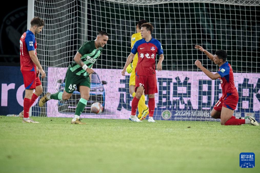 7月7日,浙江队球员埃弗拉进球后庆祝。新华社记者 江汉 摄
