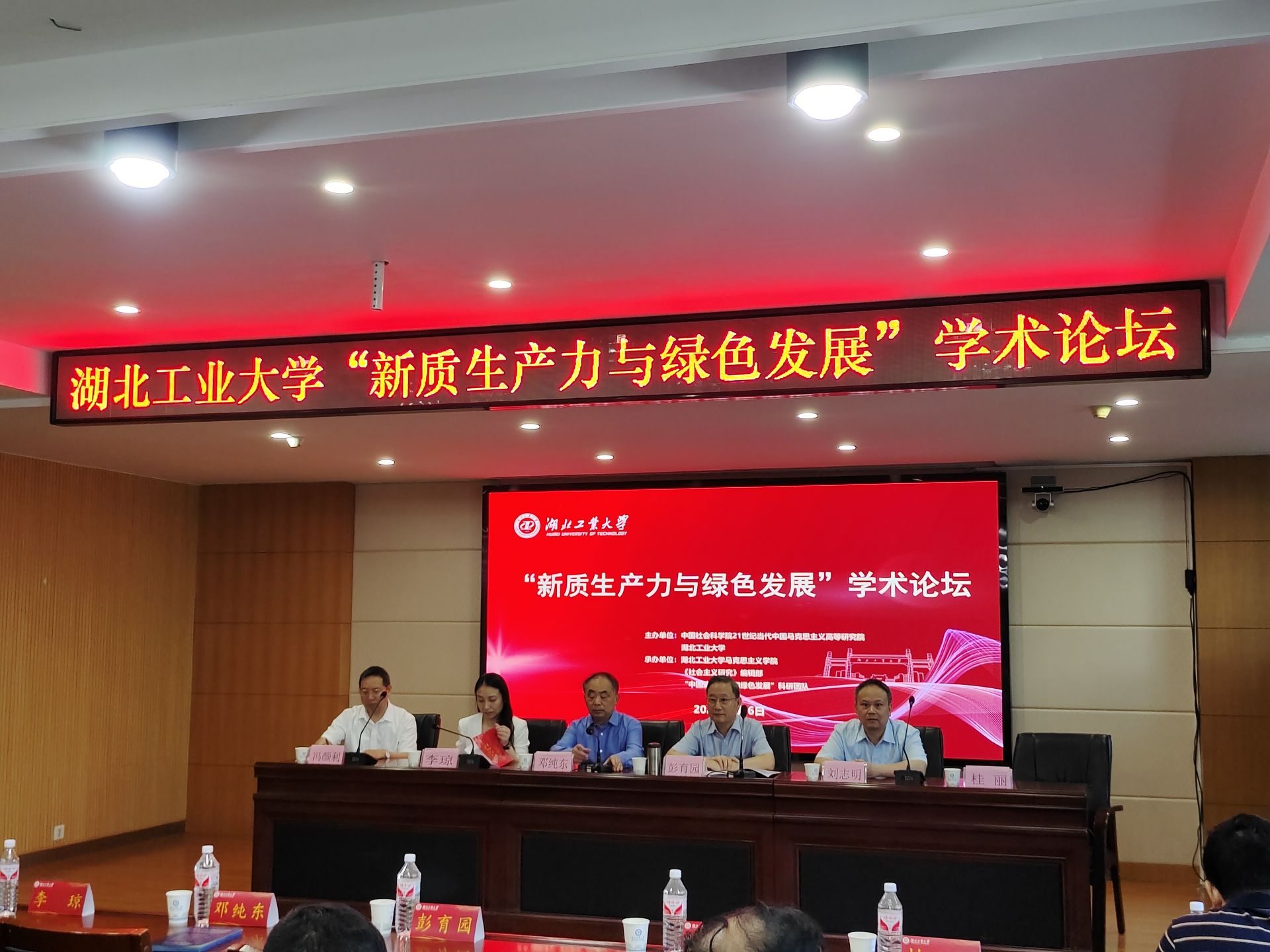 荆楚网(湖北日报网)讯(通讯员 周强、刘冲)7月6日,“新质生产力与绿色发展”学术论坛在湖北工业大学举办。论坛围绕“新质生产力与绿色发展”这一主题,深入研讨新时代发展新质生产力、推进绿色发展、建设中国式现代化的相关问题。湖北工业大学党委书记彭育园出席会议并致辞,省委宣传部理论处负责人李琼到会并发表重要讲话,湖北工业大学党委常委、组织部部长桂丽出席会议并主持开幕式。中国社会科学院大学21世纪当代中国马克思主义高等研究院原党委书记、院长、教授邓纯东等10位知名学者在会上做了主旨报告。