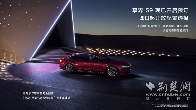 享界S9现已接受预订,预售价介于45至55万元之间,即时起提供配置定制服务。预订客户将享受意向金加倍回馈(5000元可抵10000元购车款)以及优先提车权益。已预订享界S9用户可通过线上“华为商城-我的订单”,或咨询专属体验顾问进行配置选择,享界S9 Ultra及享界S9 Max两大版本随心选择。选配内容包括:外观/内饰颜色、轮毂及零重力座椅套装、智能激光投影系统、流媒体外后视镜。