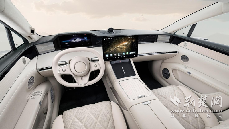 内饰方面,享界S9的精致无处不在。星河画卷饰板搭配1680万色域流水氛围灯,营造出极致奢华的座舱氛围。内饰提供白沙杏、凝脂白、琥珀棕和极夜黑四种色调,与寰宇红、星晖金、鎏金黑、深空灰、陶瓷白五种车身色彩相映成趣,满足个性化需求。全车Nappa真皮座椅与天然实木装饰的中控扶手台及门板,彰显考究品质。