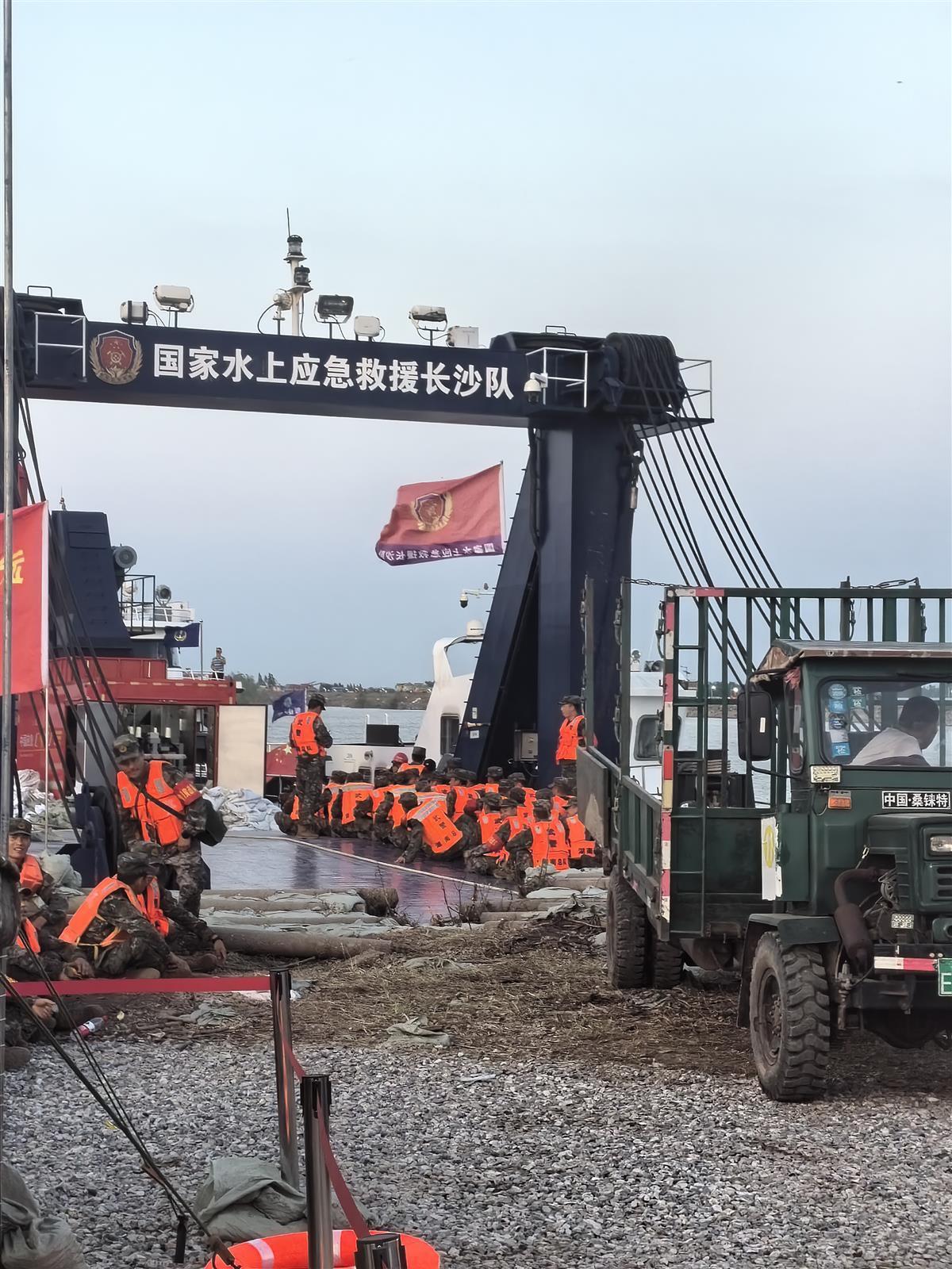 岳阳市民兵应急营和华容县、君山区、岳阳楼区、云溪区的防汛备勤民兵携带装备紧急驰援。