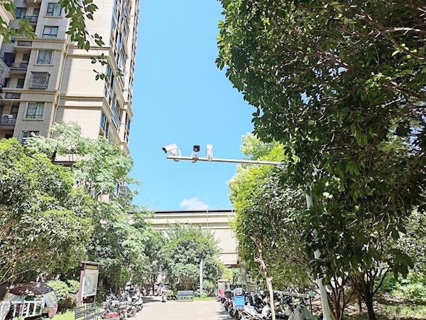 记者走进小区,抬头可见许多崭新的监控立杆,有的是“多头”监控,分工合作“管”好前、中、后三个方向,有的是全景监控,一个头两只眼,拥有180度的超大视角,走到哪个角落都有监控“护航”,安全感十足。