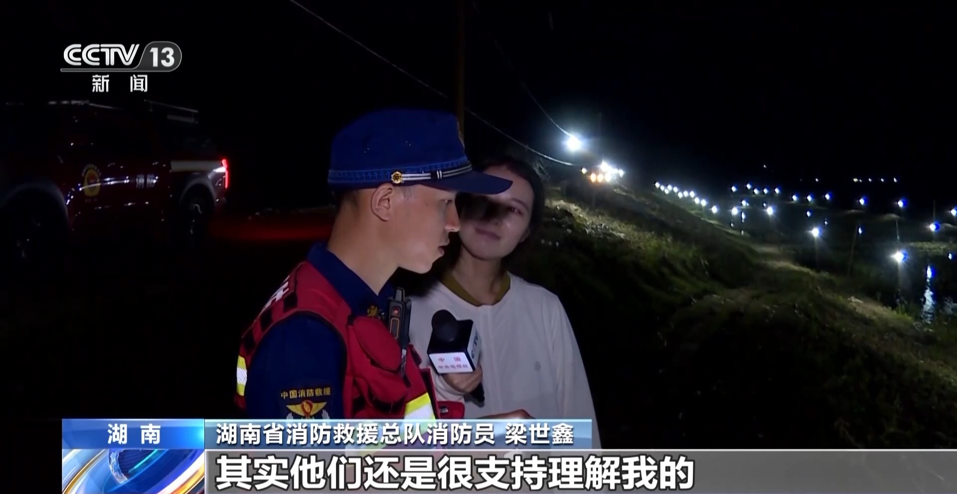 湖南省消防救援总队消防员 梁世鑫:因为这次抢险,我婚期都推了,这还是我老婆主动提的,其实他们还是很支持理解我的,我非常感谢他们。