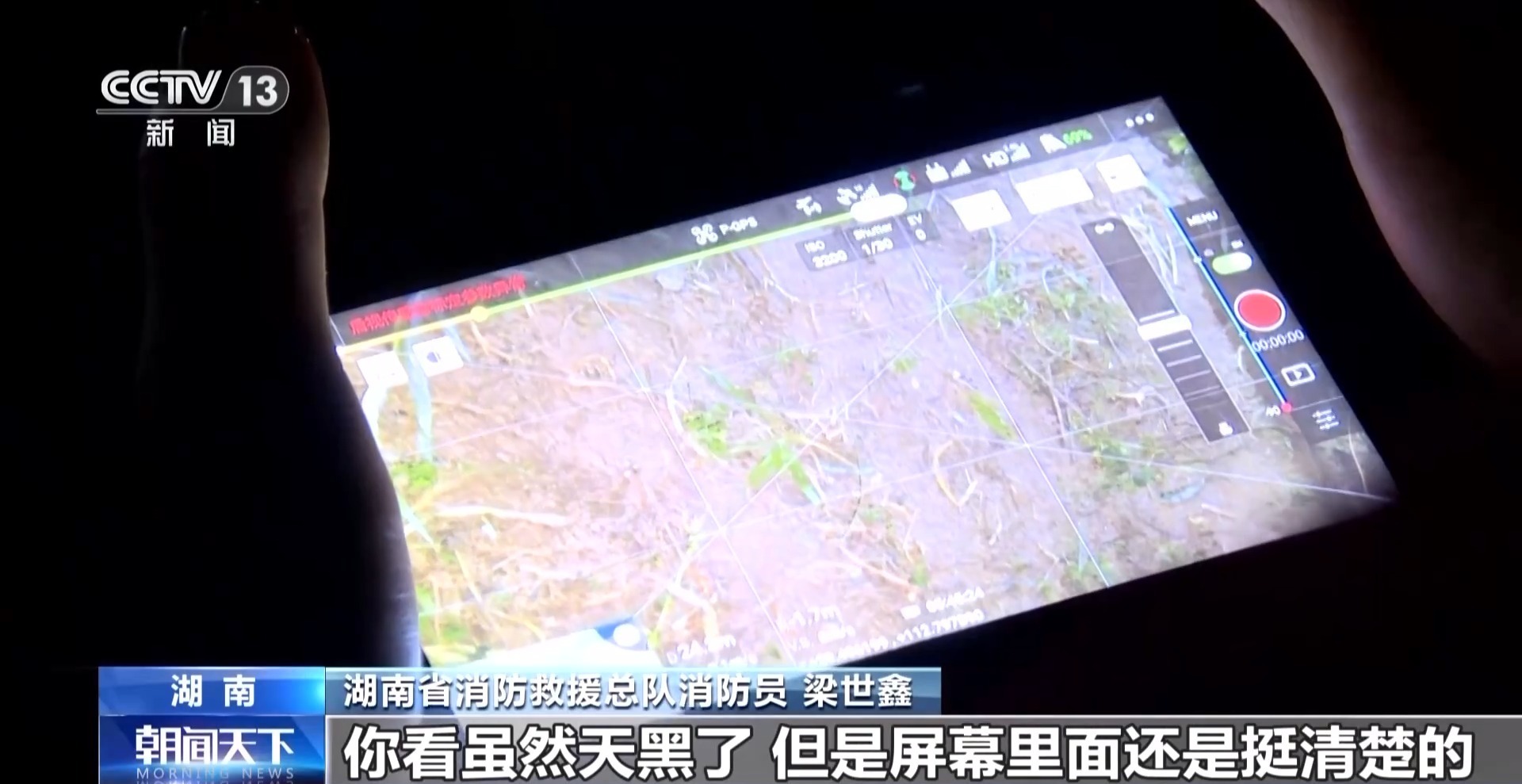 湖南省消防救援总队消防员 梁世鑫:虽然天黑了,但是屏幕里面还是挺清楚的。我每天要来回飞十几趟,用它来辅助人工,效率提高不少。后续这里还有一系列排涝清淤等工作,我们巡堤的要一直盯着,后面持续的时间就长了。其实从平江开始,我就一直跟着了。