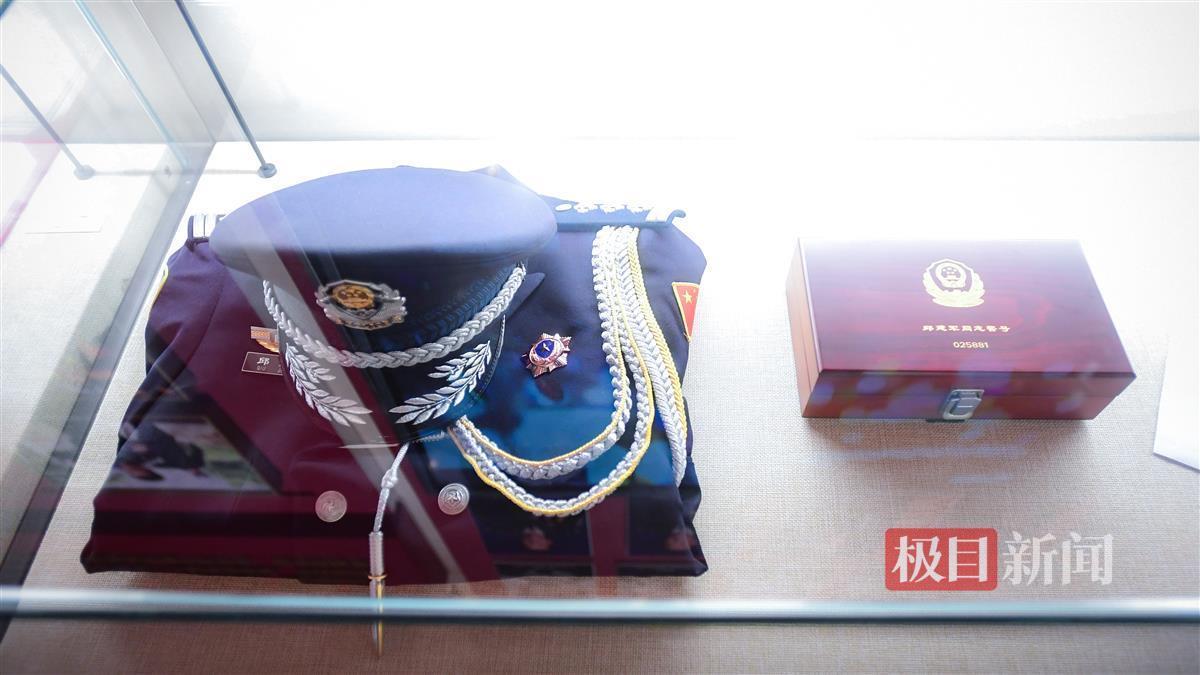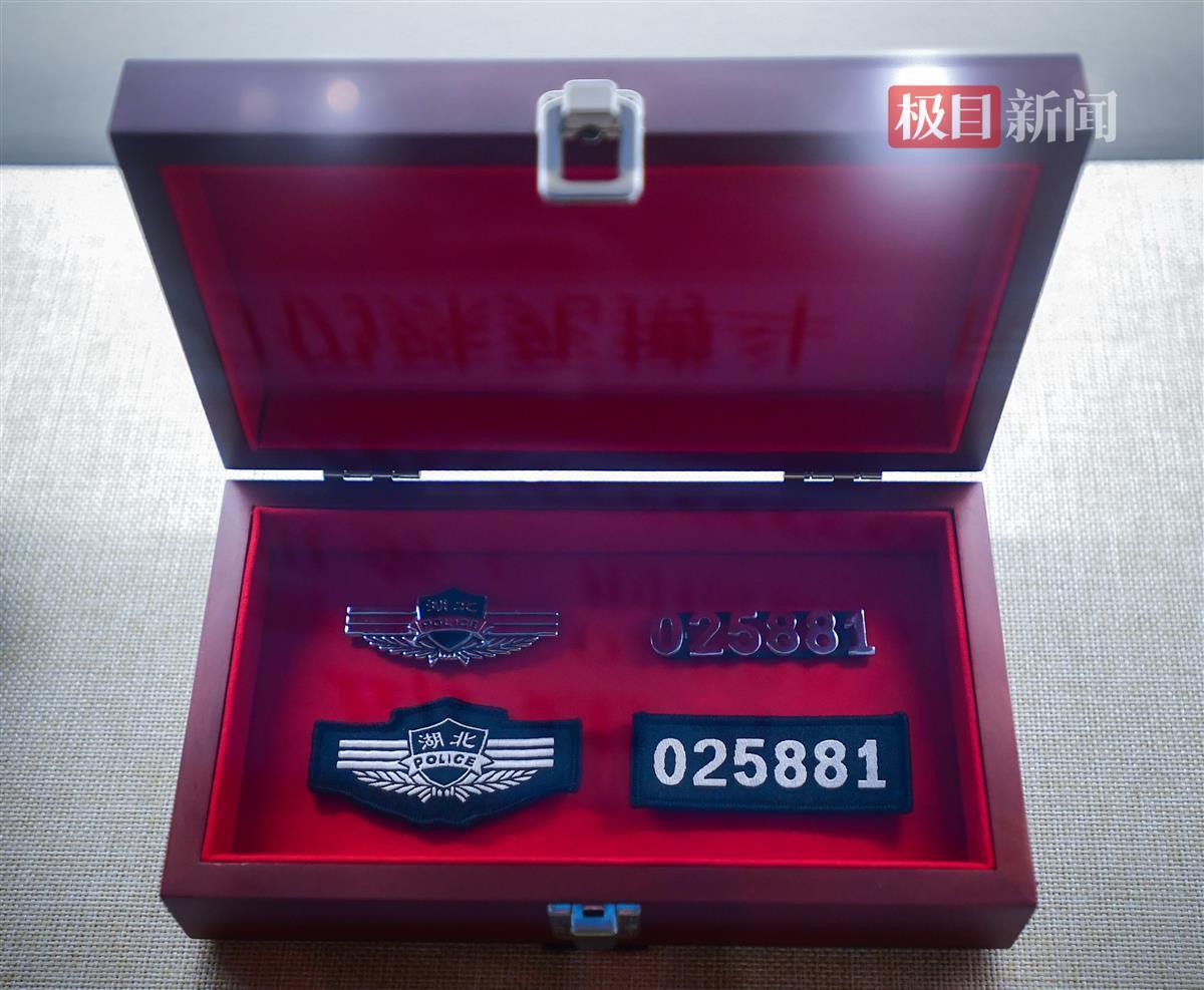 武汉市公安局江汉区分局党委副书记、政委陈汉生眼含热泪地对警号和警礼服细细地进行整理,随即缓缓地、轻轻地将装有警号的盒盖盖好。