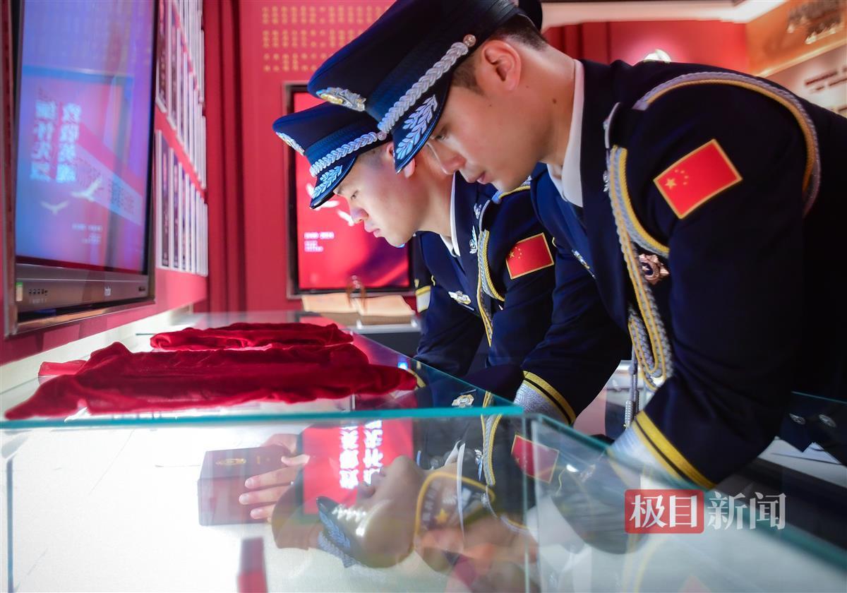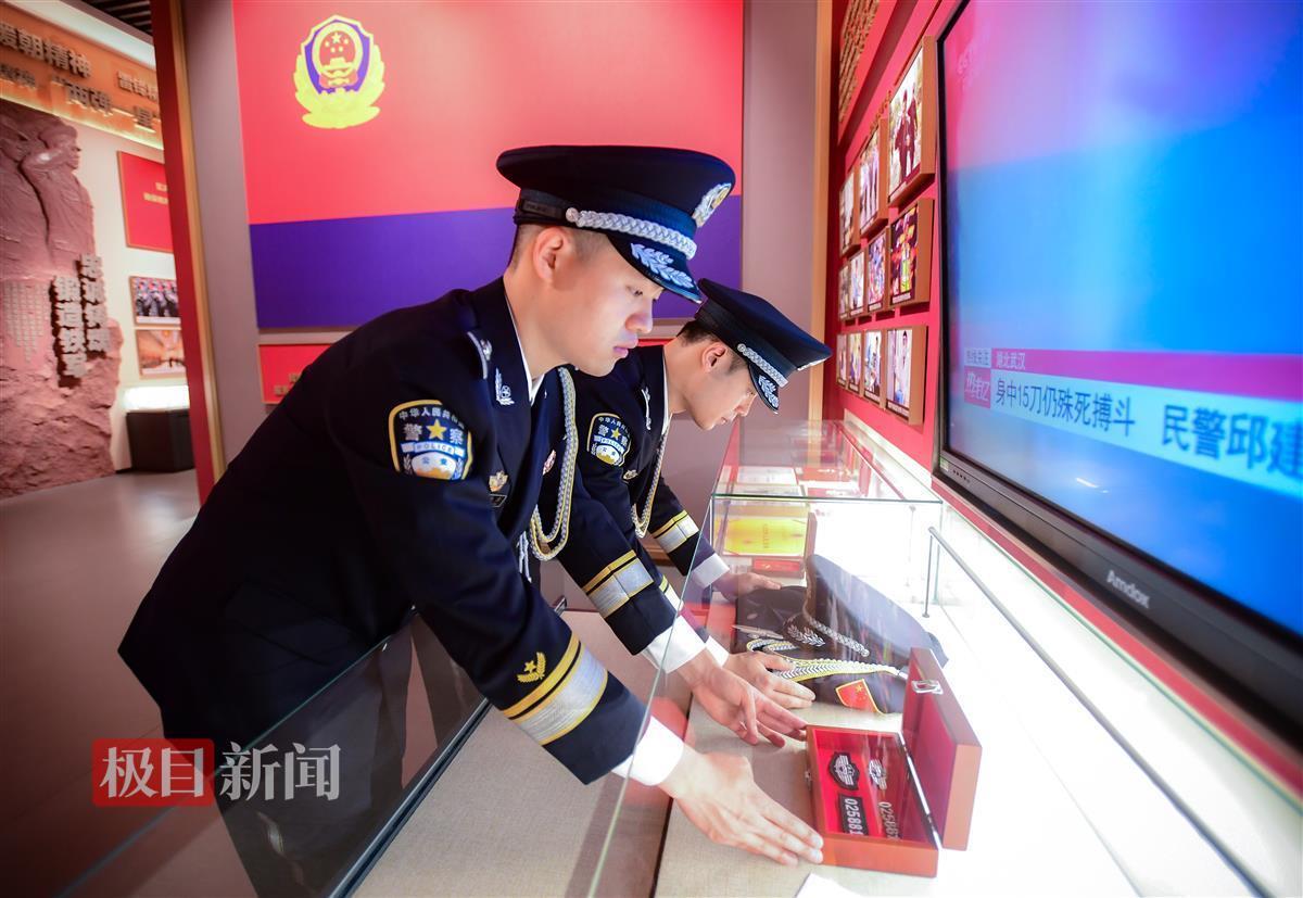 “敬礼!”战友们举起右手,高唱《中国人民警察警歌》,在雄壮的乐曲声中,目送着昔日战友被封存的警号移送至党建中心英烈事迹展示厅。展示厅的电子屏上正在循环播放着邱建军的感人事迹。