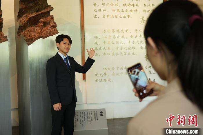 图为台湾青年在北大校史馆留念。中新社记者 朱贺 摄