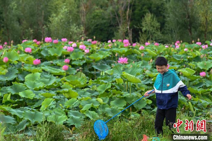 7月10日,小朋友在荷塘边玩耍。当日,云南省昆明市呈贡区斗南街道2024年“‘荷’和美美 趣游江尾”荷花节主题活动举行,吸引市民、游客前来品味“夏日荷韵”。中新社记者 李嘉娴 摄