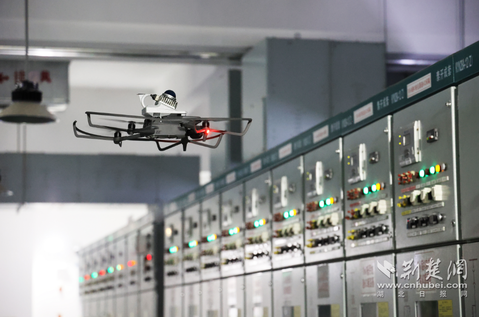 荆楚网(湖北日报网)讯(通讯员 王欣、冯殷尧)利用无人机对变电站设备进行智能巡视的数字化方式又有了新的变化。7月9日,国网武汉供电公司在220千伏赵家条变电站室内进行着无人机智能巡视,更加灵活、高效地对各个电气设备实施精准检测。这也是湖北省首次开展变电站室内无人机智能巡视,在有效提升变电站运维质效的同时,大幅节约人力、投资、维护成本。