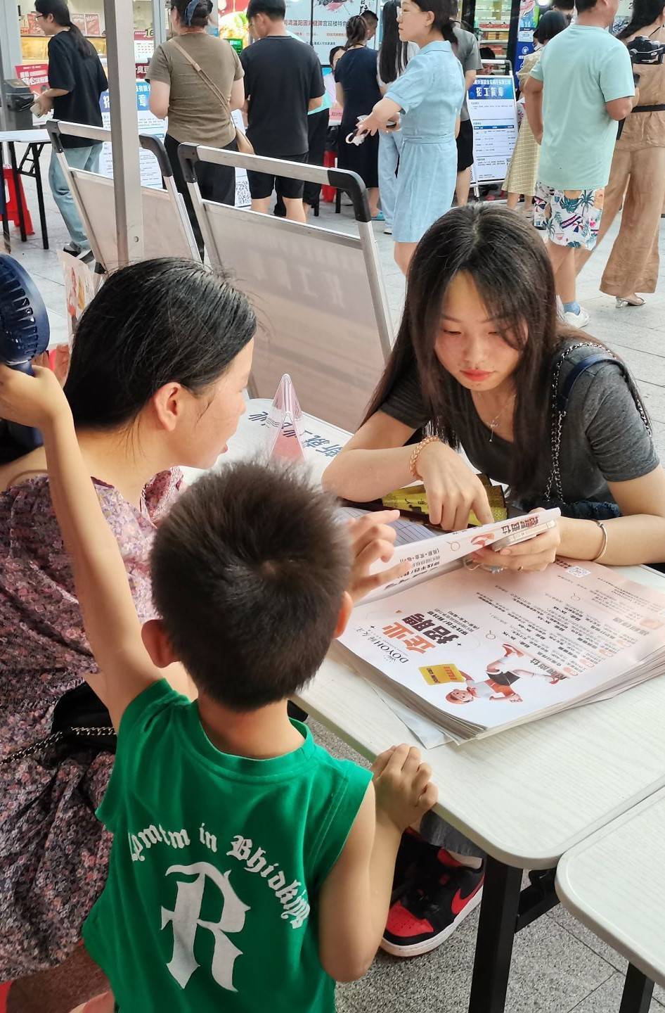 夏日的傍晚,夜幕还未降临,招聘企业的展位早已摆放整齐,不少求职者穿梭在各个展位之间,与企业面对面沟通交流,了解企业用工、薪资待遇等信息,努力寻找自己心仪的岗位。