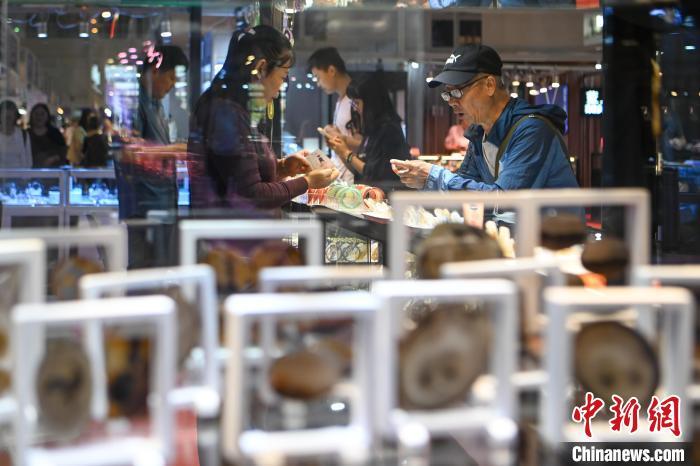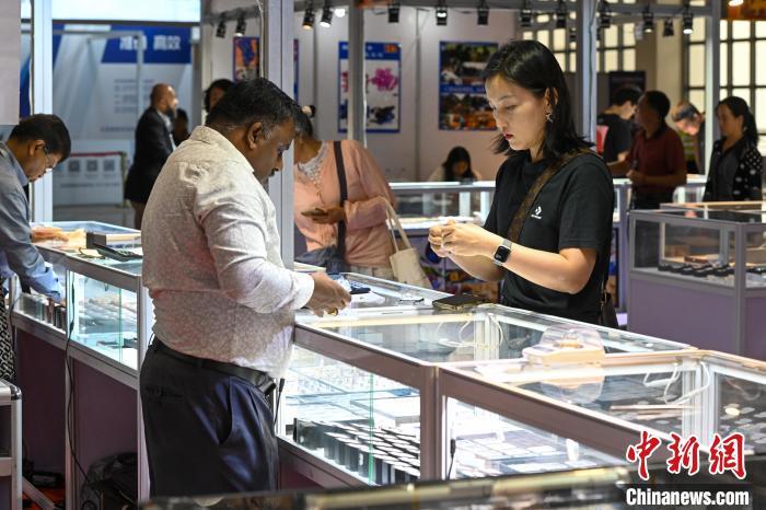 7月11日,参观者挑选玛瑙。当日,2024中国昆明国际石博览会暨云南国际珠宝玉石展开幕,本届石博会围绕“珠宝玉石、赏石文化、非遗工艺”三大核心板块,设置国际品牌珠宝馆、时尚首饰馆、玉石翡翠馆、奇石馆、工艺美术馆。中新社记者 李嘉娴 摄