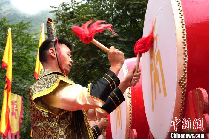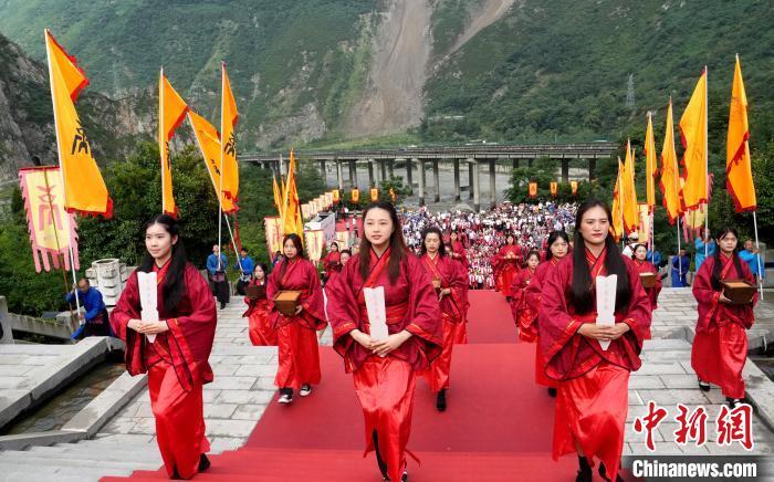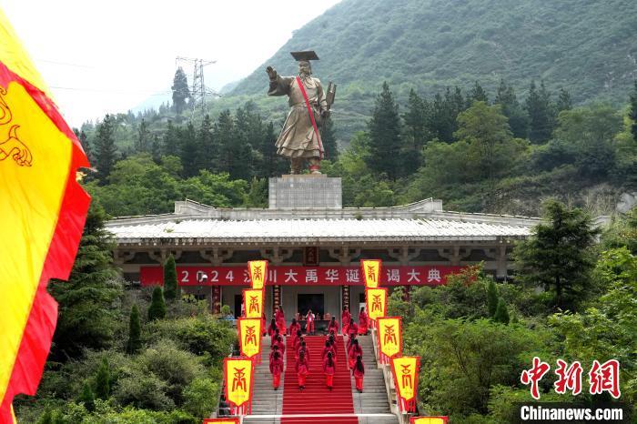 7月11日,2024汶川大禹华诞拜谒大典在“大禹故里”汶川县国家4A级大禹文化旅游区举行。参加庆典活动的嘉宾和当地民众怀着无比虔诚的心齐聚于此,共同缅怀“治水英雄”——大禹的丰功伟绩。图为拜谒大典现场。中新社记者 安源 摄