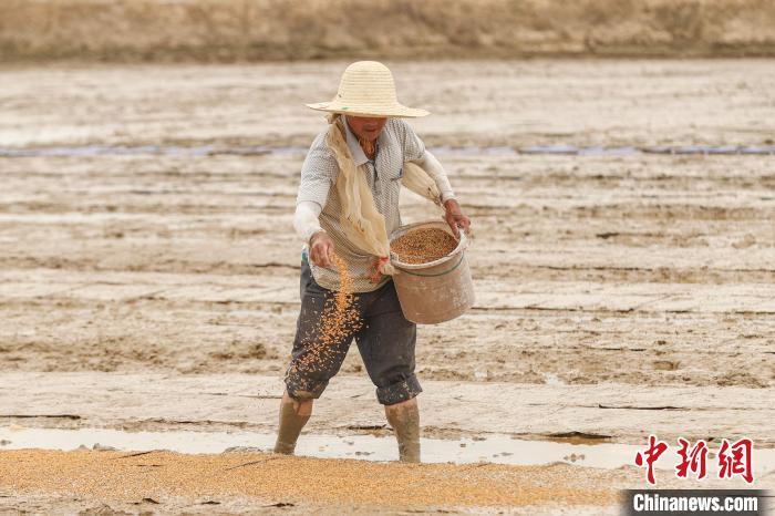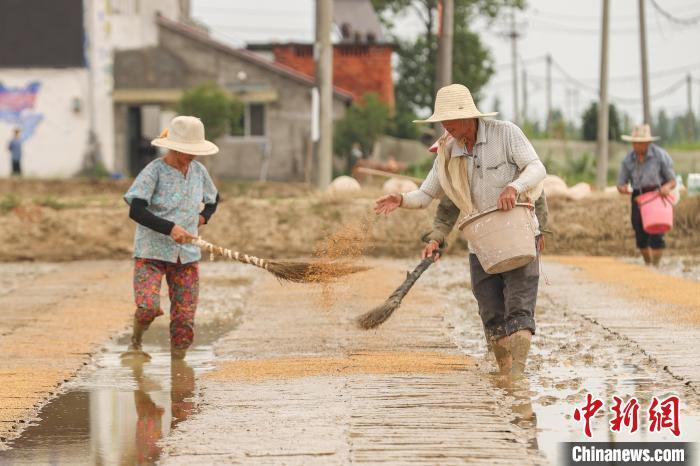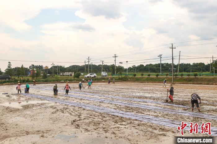 7月11日,江西永修县立新乡,种粮大户徐国清聘请的农户正在一处未受淹的农田里开展育秧作业,这些秧苗育好后将被移栽到被洪水淹过的稻田。徐国清承包的稻田中有400多亩在本轮洪灾中受淹绝收,随着洪水逐渐退去,徐国清抢抓近日的晴好天气,开展复耕补种工作。永修县地处江西五大河流之一的修河下游,境内水系发达,也是江西省6月中下旬开始的洪涝和地质灾害的主灾区之一,洪涝灾害导致该县部分农作物受灾严重。中新社记者 刘力鑫 摄