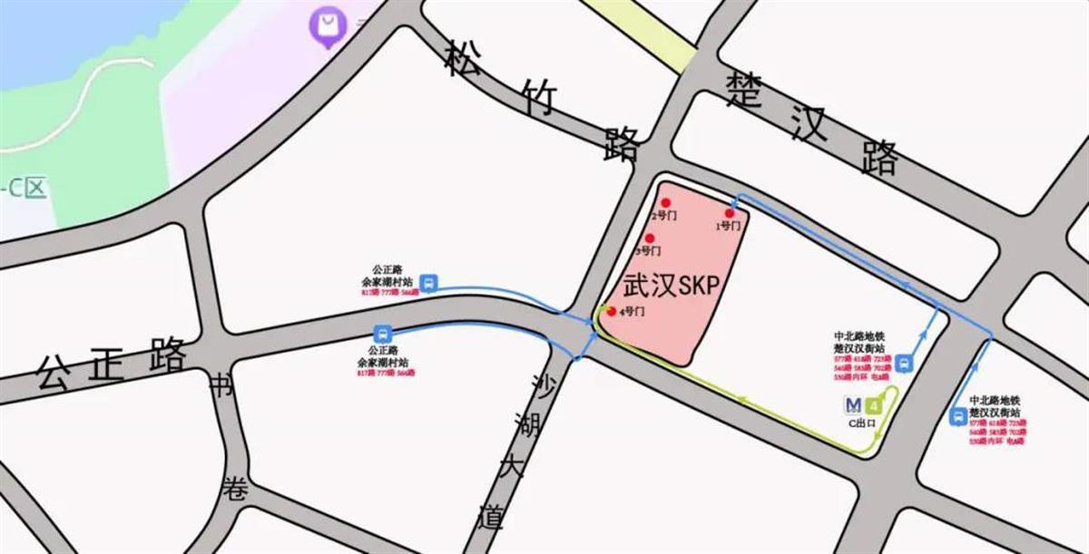 乘坐出租车、网约车前往武汉SKP商业体的,可在以下地点下车: