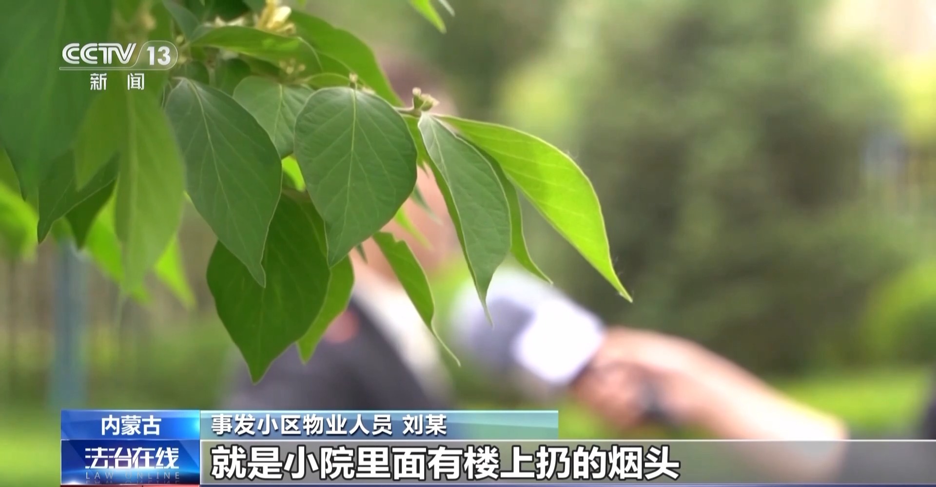 事发小区物业人员 刘某:当天,这栋楼的一楼业主反映小院里面有楼上扔的烟头、烟壳子,业主让帮忙看看是谁家往下扔的,我就让保安上去看一看是谁家正在装修,谁家往小院里扔这些东西,物业这边出一个告知。