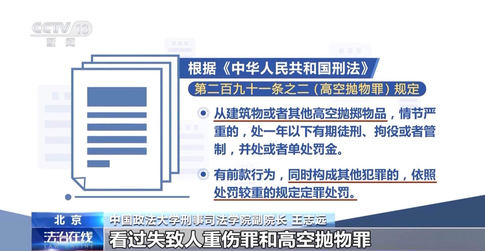 中国政法大学刑事司法学院副院长 王志远:个人要表达某种情绪的时候,不要去用抛物来泄愤的方式。从每个人都可能成为被害人的角度上说,谨慎观察是必要的。