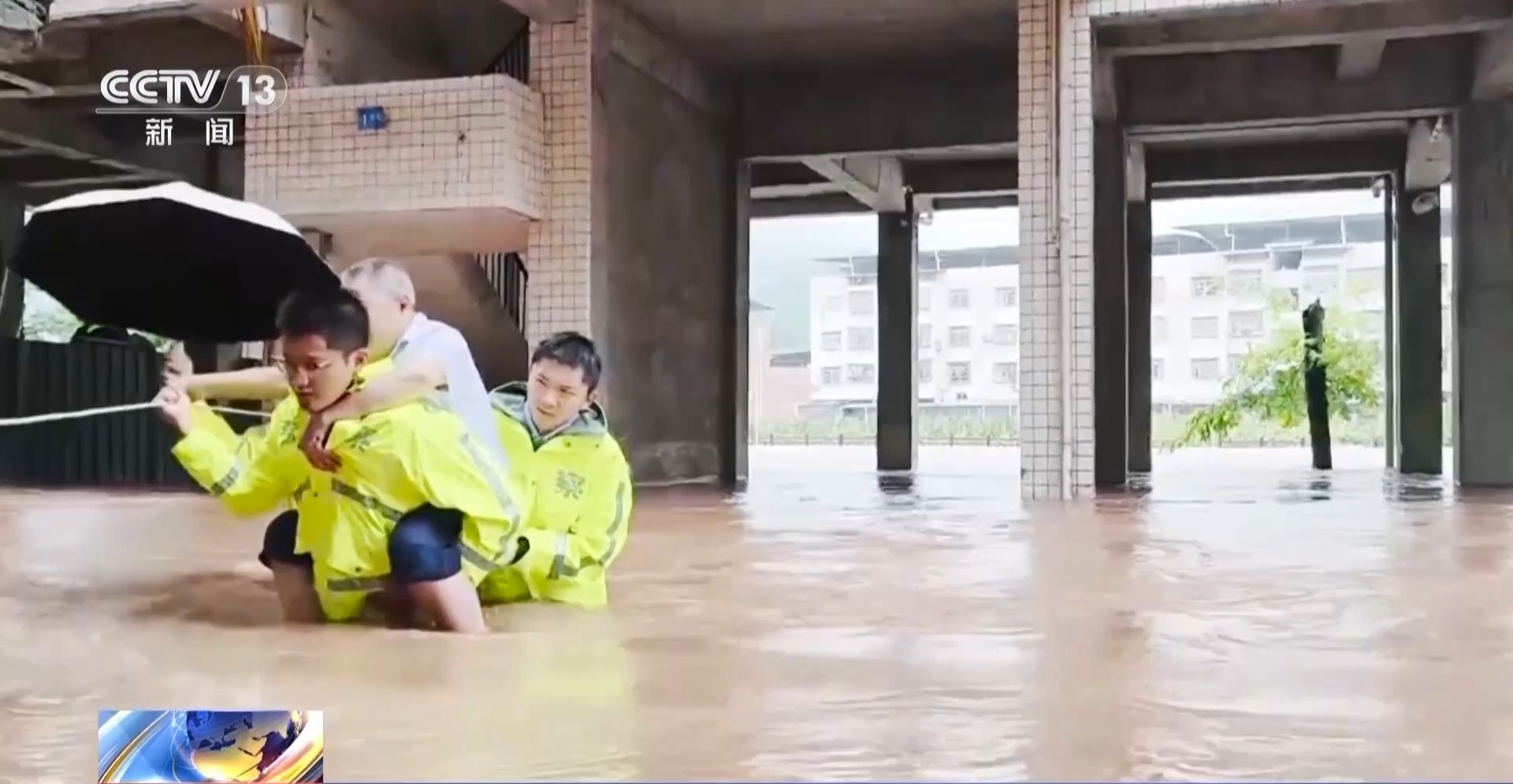 受暴雨影响,7月11日,重庆开州区中和镇的降雨量一度达到185.6毫米,开州区中和镇三合社区部分区域被洪水淹没,一名行动不便的老人因为撤离不及时被困在楼道里。当地派出所民警紧急出动,蹚水救援。