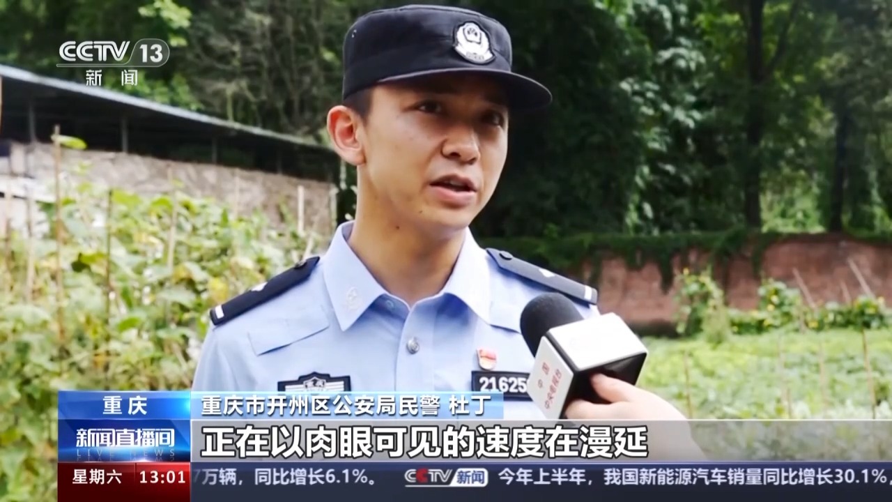 重庆市开州区公安局民警 杜丁:我们到达现场的时候,河里的水已经上堤,正以肉眼可见的速度在漫延。最初的时候只能淹没鞋子,但是仅仅在20分钟之内,就已经涨到了齐腰的位置。