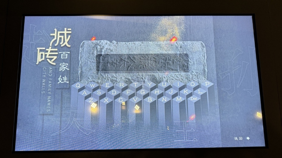 △ 南京城墙博物馆中的城墙百家姓互动,可以寻找与你相同姓氏的城砖