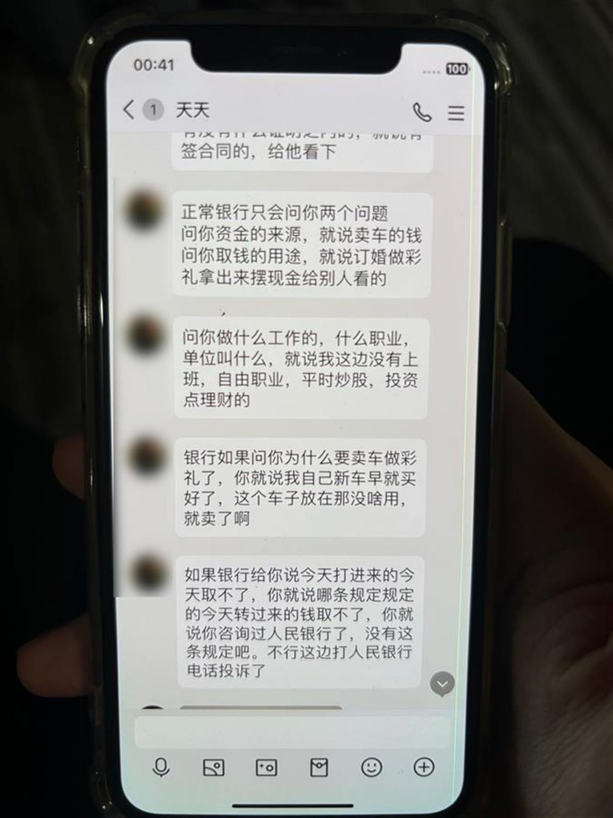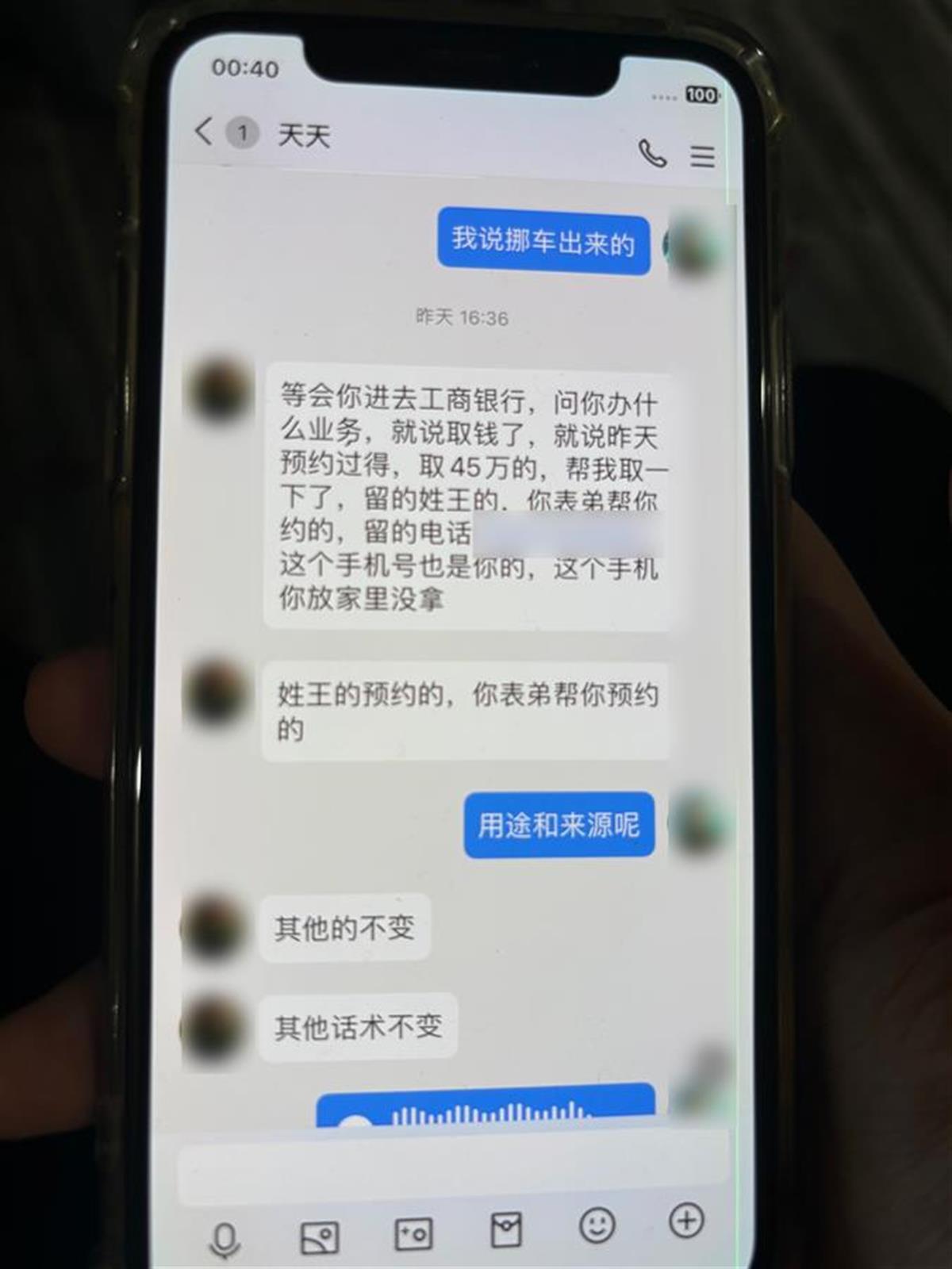 民警在游某的手机里,发现了上线教他如何在银行大额提现的话术。比如,“银行只会问你两个问题。问你资金的来源,就说卖车的钱。问你取钱的用途,就说订婚做彩礼,拿出来摆现金给别人看的。”“问你是做什么工作的?单位叫什么?就说没有上班,自由职业,平时炒股。”